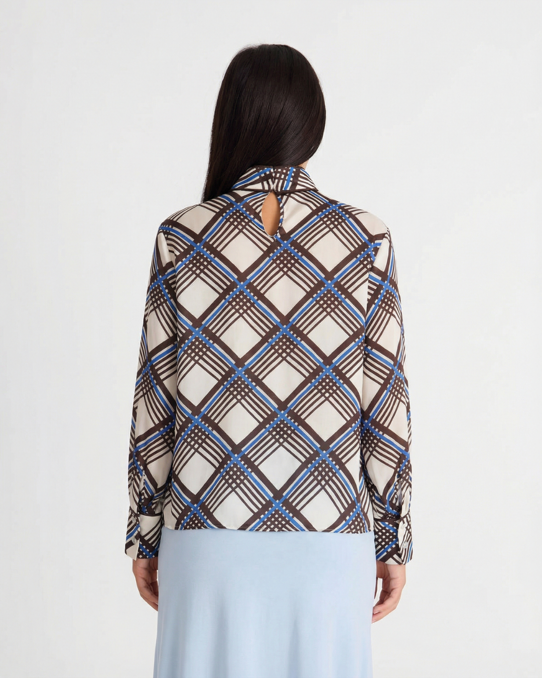 Meet the MeandMio Vintage Graphic Grid Blouse - White.