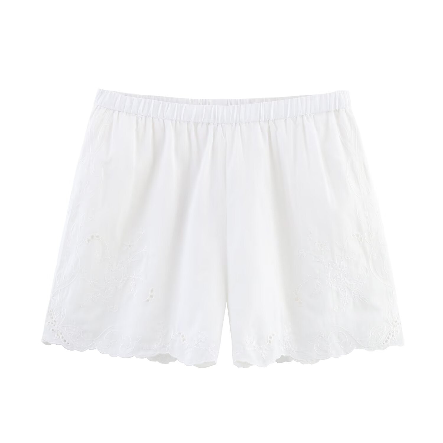 Meet the MeandMio Essential Scallop Embroidery Shorts - White.