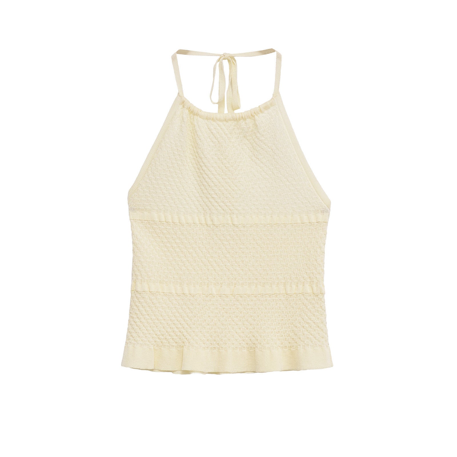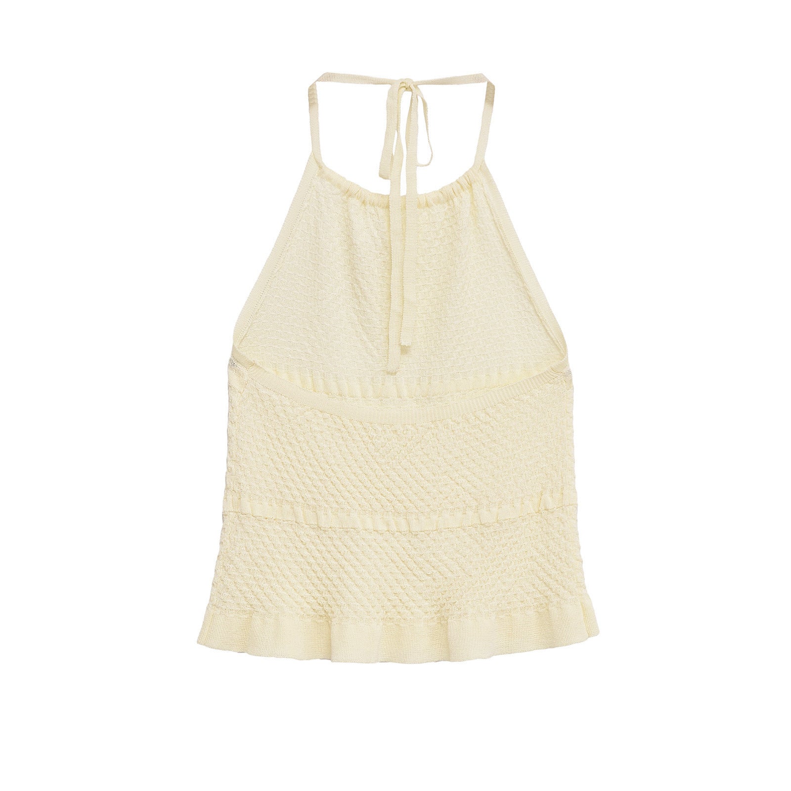 Daisy | Summer Crochet Halter Neck Top Cream Knitted Tie Back.