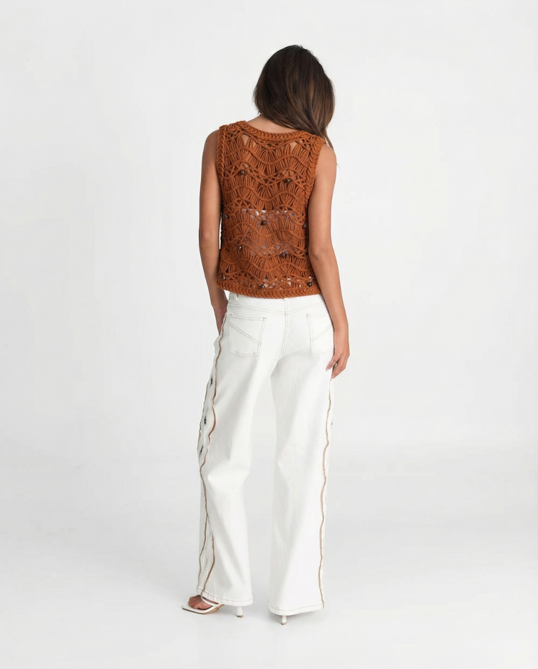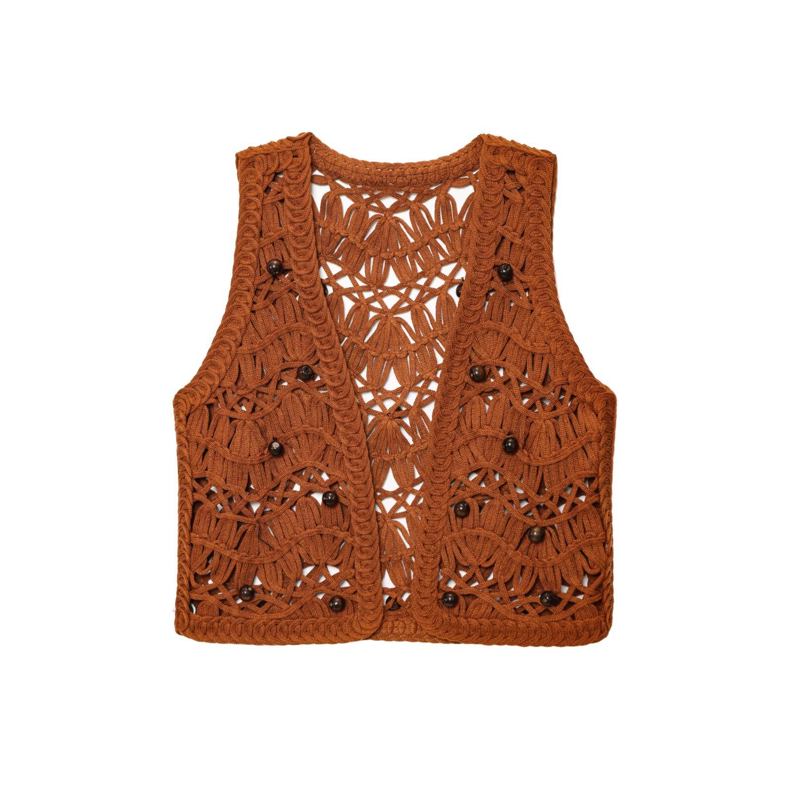The Luxe Crochet Beaded Vest - Brown brings handcrafted detail into a bold, elevated statement.