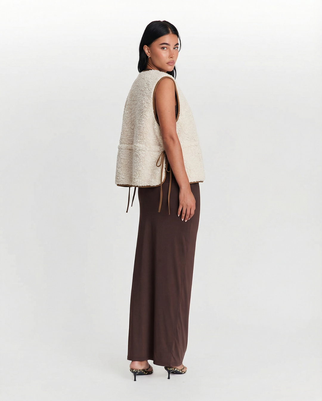 Meet the Essential Sherpa Zip Vest - Beige. The perfect balance of comfort and everyday style.