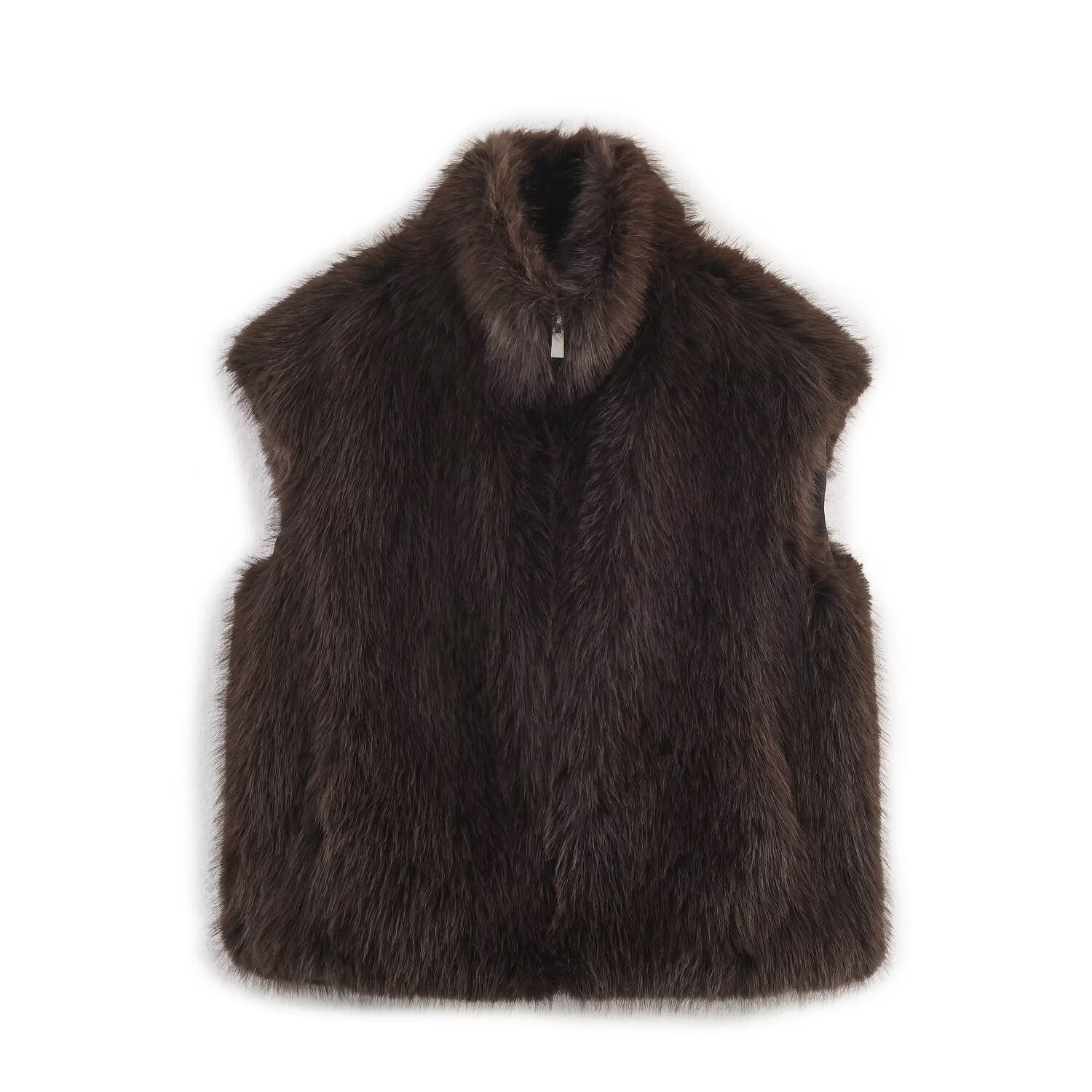 Until now. Meet the Essential Zip-Front Faux-Fur Vest - Brown. A premium quality layering piece that brings warmth, style, and all-day comfort together in one effortless design.