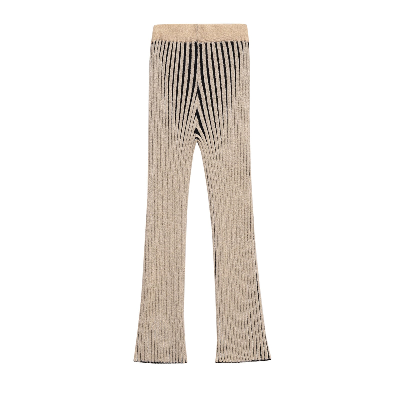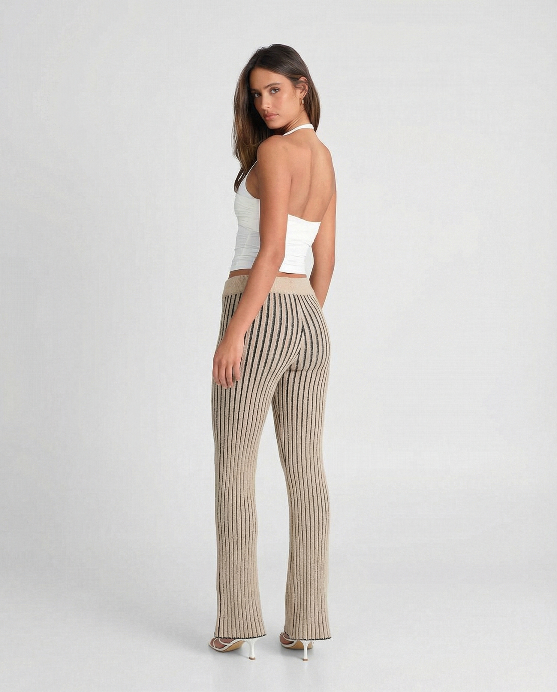 Vera | Ribbed Flared Pants Cream Striped Wide Leg