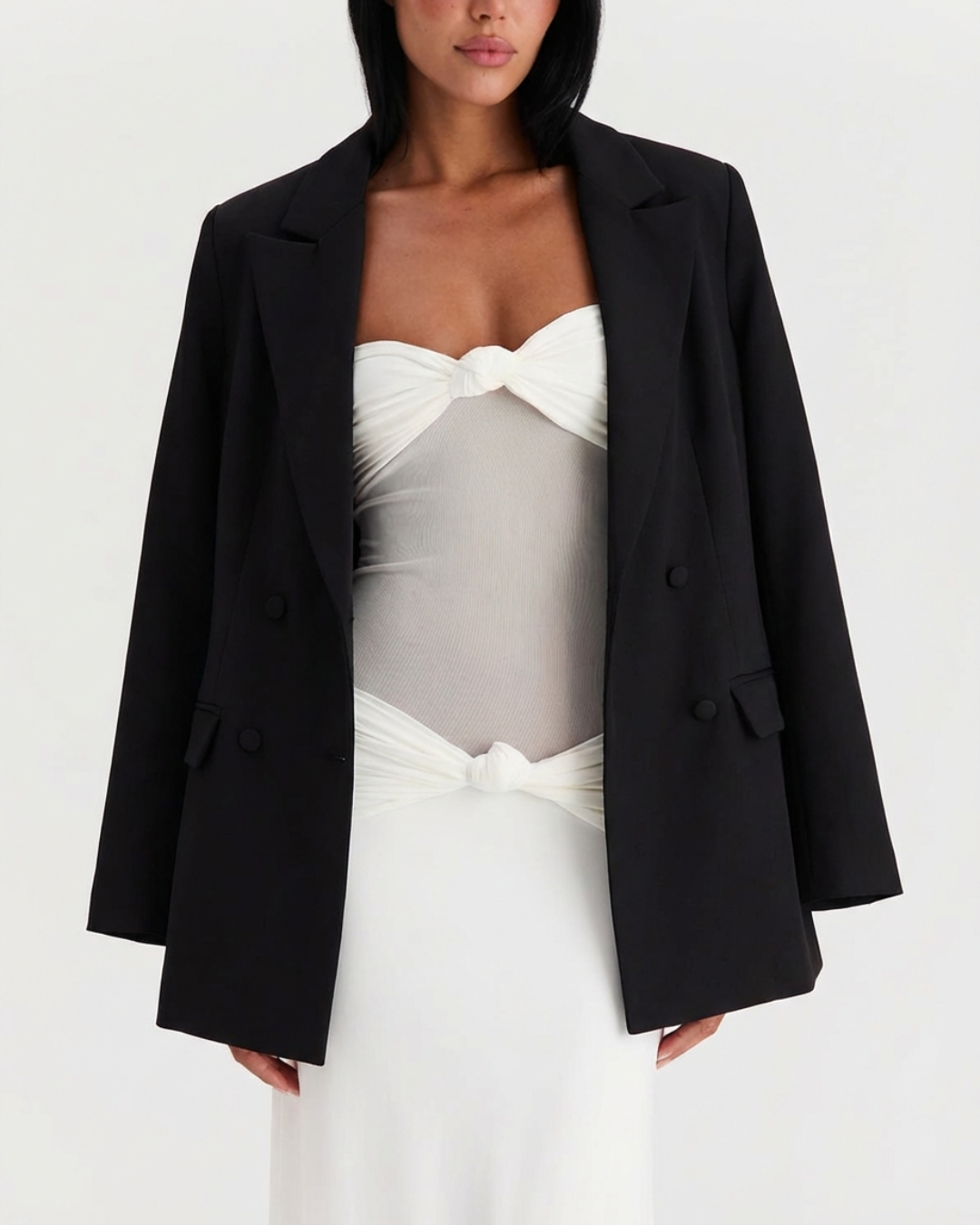 Meet the MeandMio Urban Oversized Double-Breasted Blazer - Black.