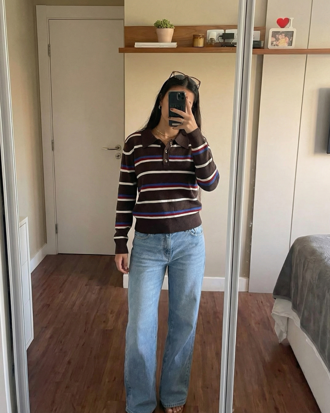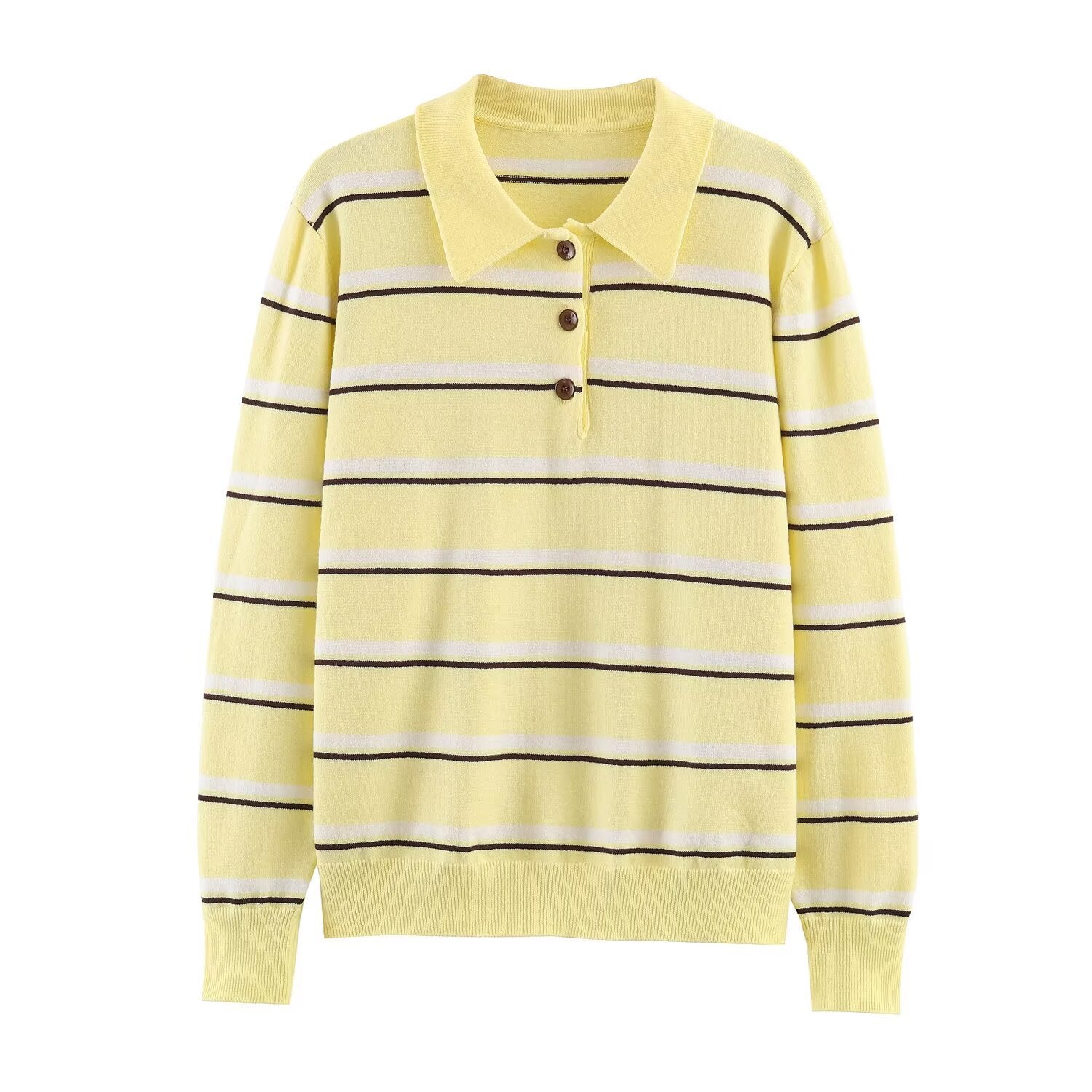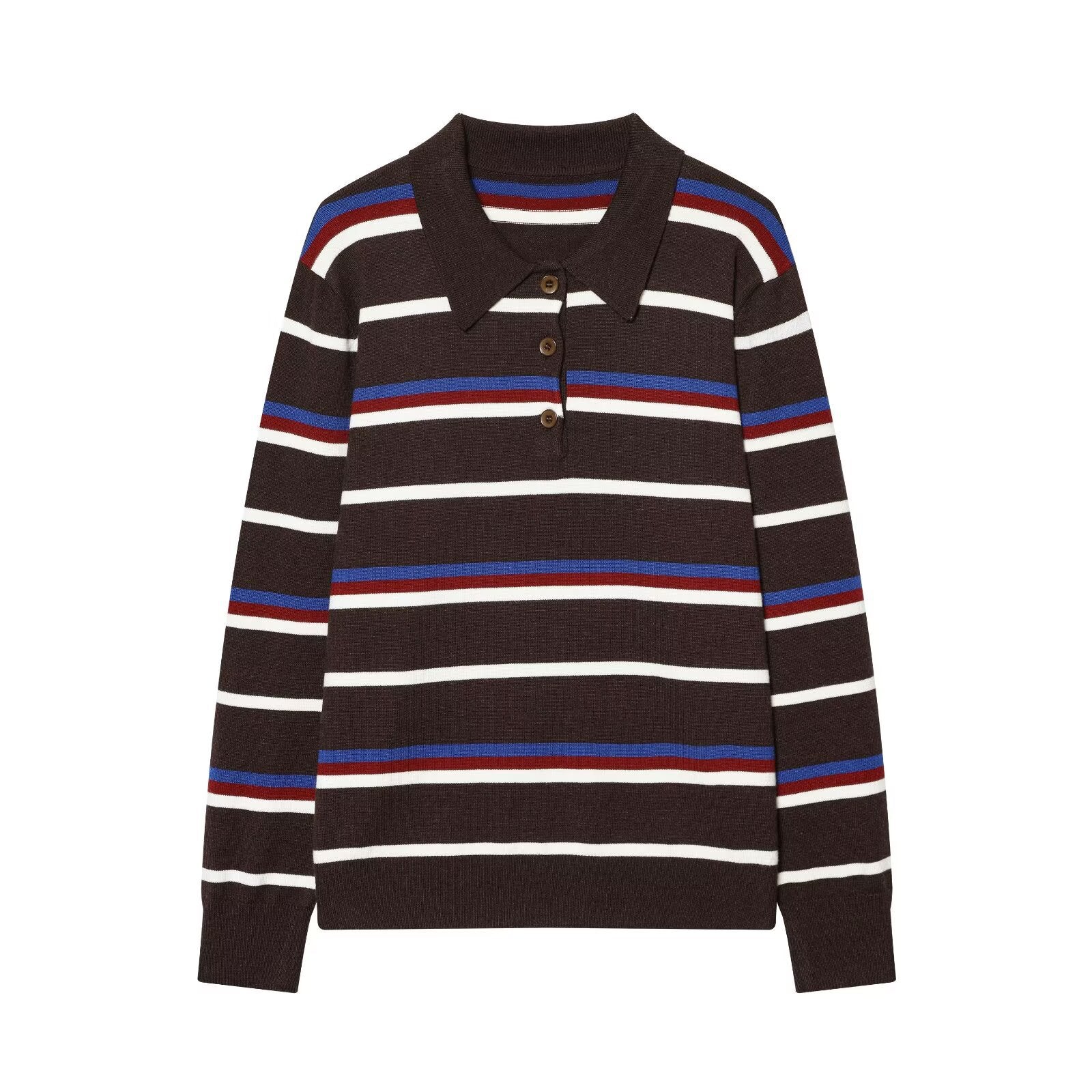 Meet the MeandMio Poppy | Cheerful Striped Knit Long Sleeve Polo Jumper.