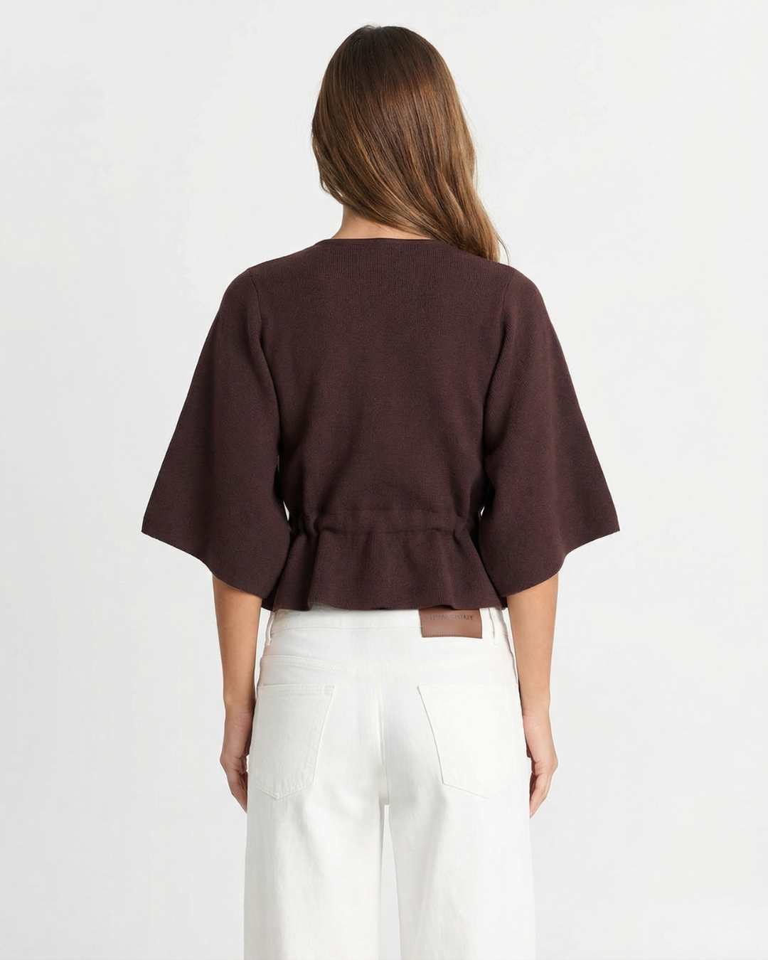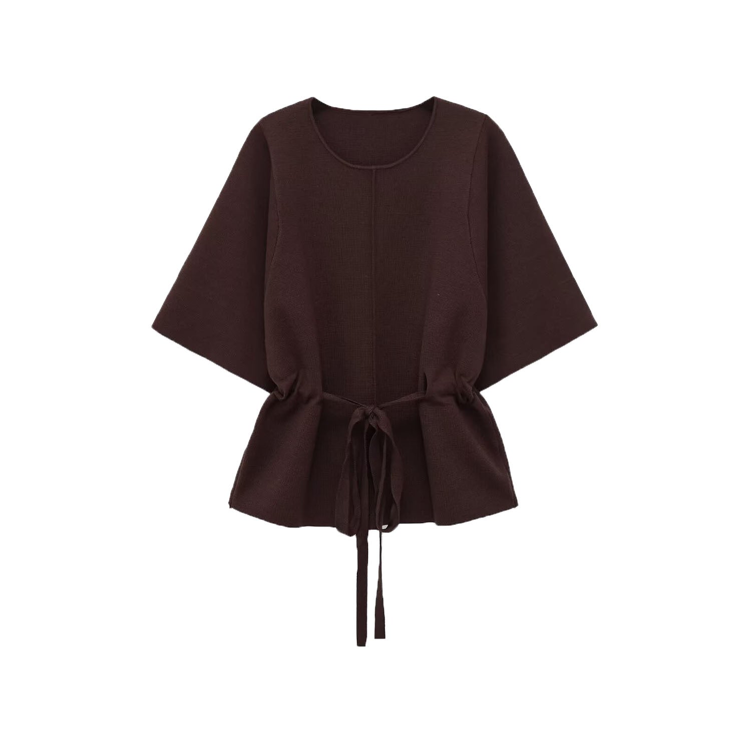 Meet the MeandMio Studio Drawstring-Waist Top - Brown.