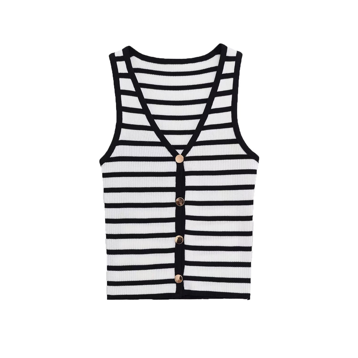 Meet the Essential Stripe Buttoned Vest Top - Black. A timeless knit that brings structure, contrast, and confidence into one effortless piece.