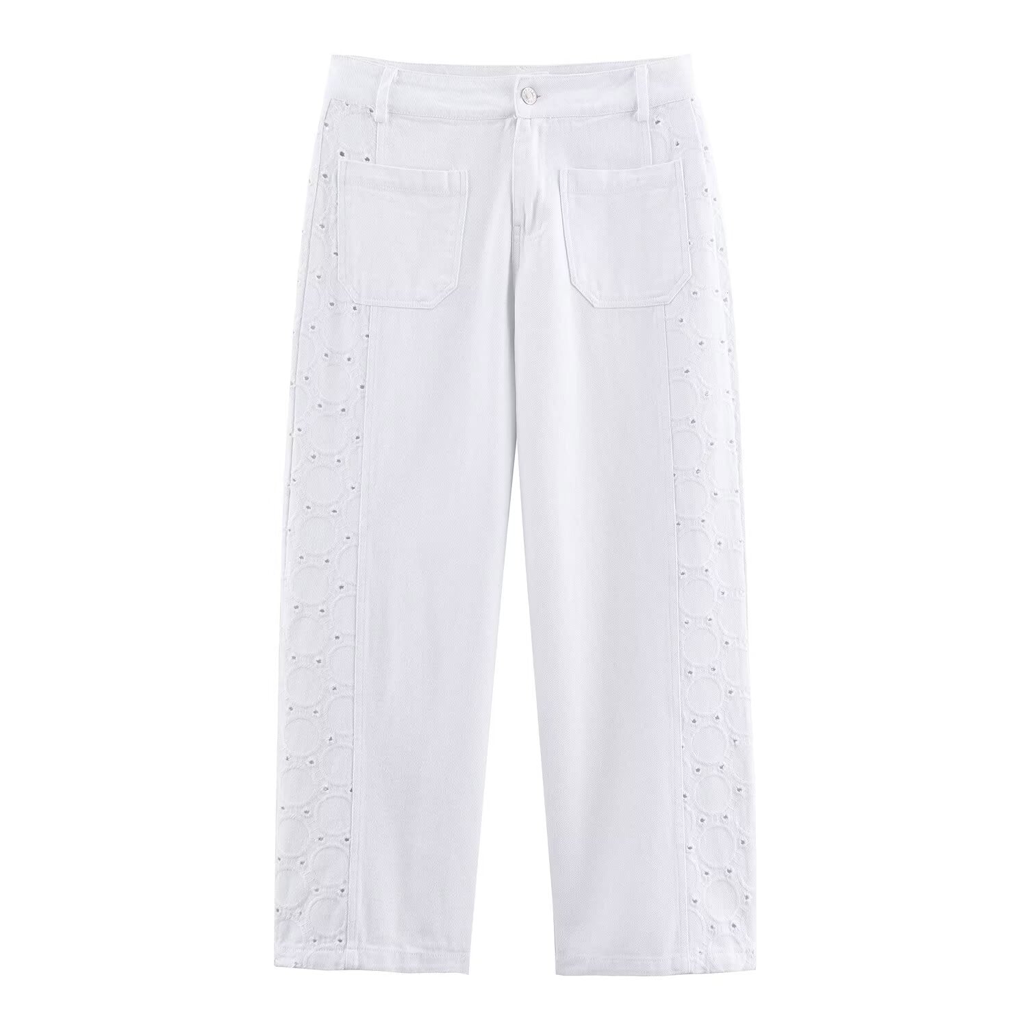 Meet the MeandMio Vintage Eyelet-Panel Pants - White.