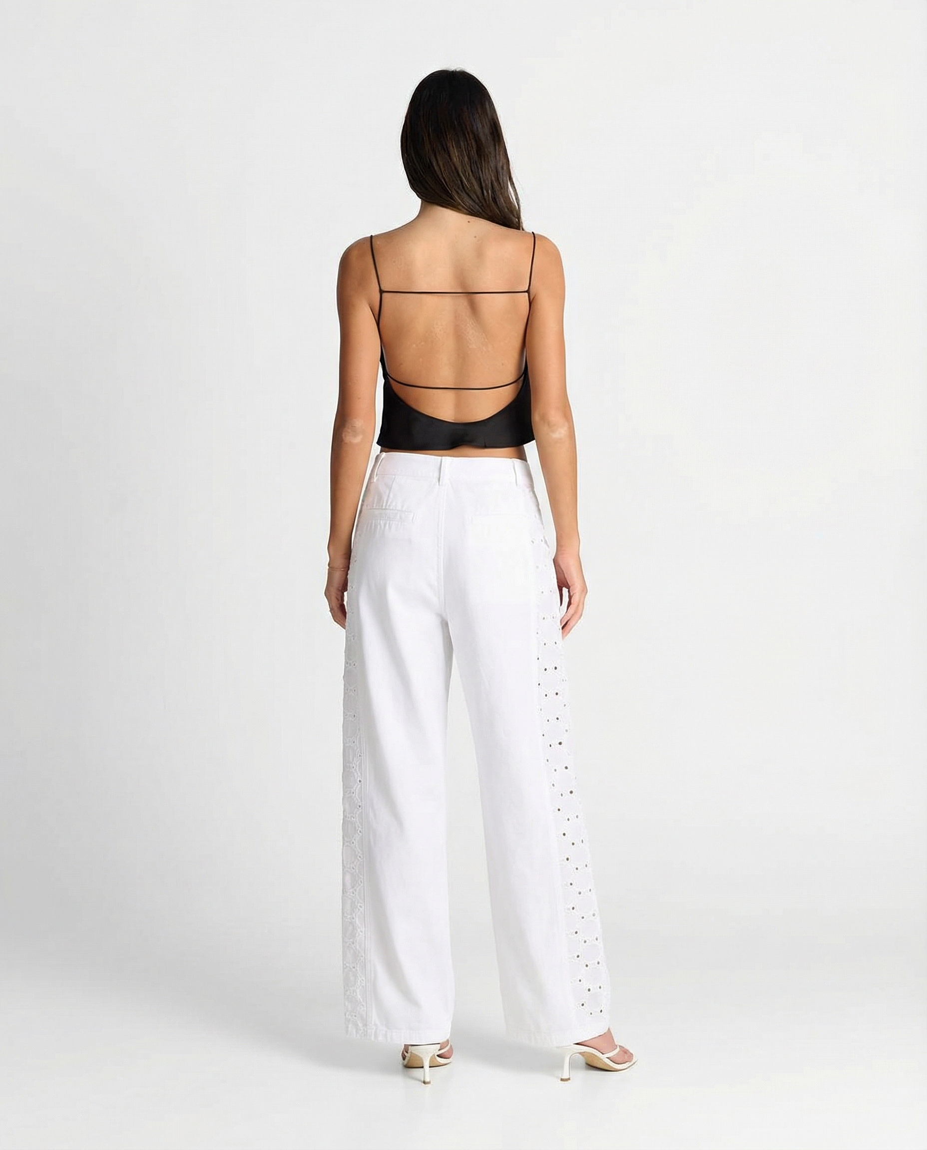 Margot | White Wide Leg Jeans Eyelet Detail High Waisted