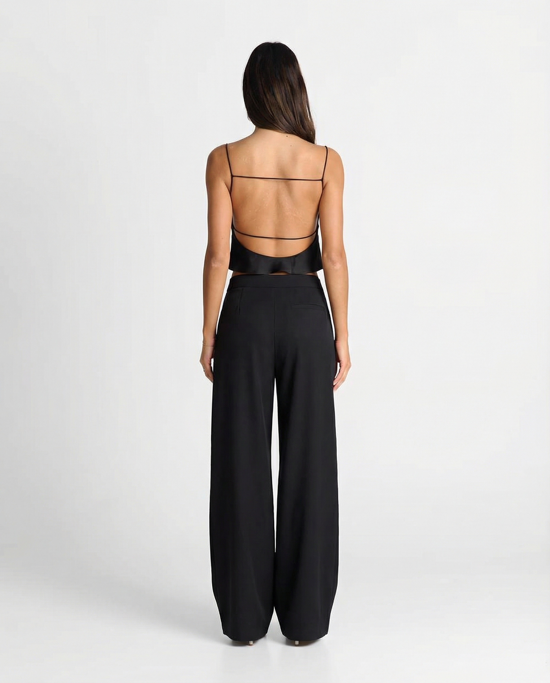 Alma | Wide Leg Tailored Trousers Black High Waisted
