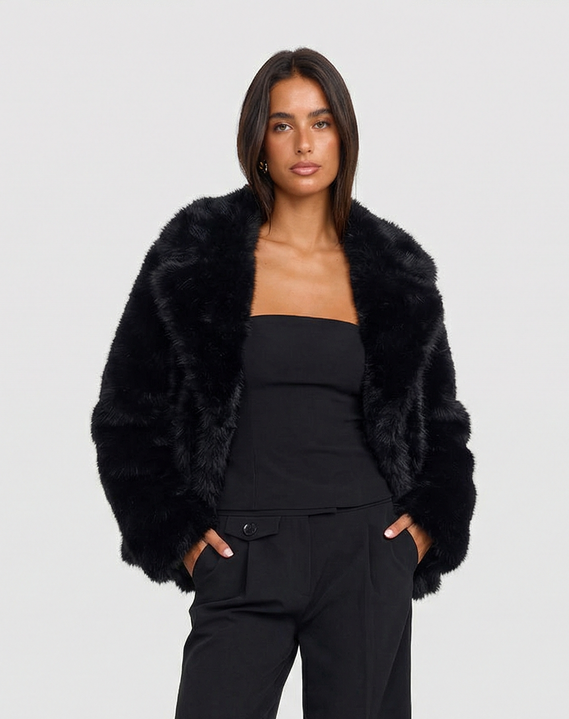 Until now. Meet the Luxe Cropped Faux-Fur Coat, designed to give you plush comfort with a clean, confident silhouette. Available in khaki and black, this coat brings premium softness and everyday style together in one effortless layer.