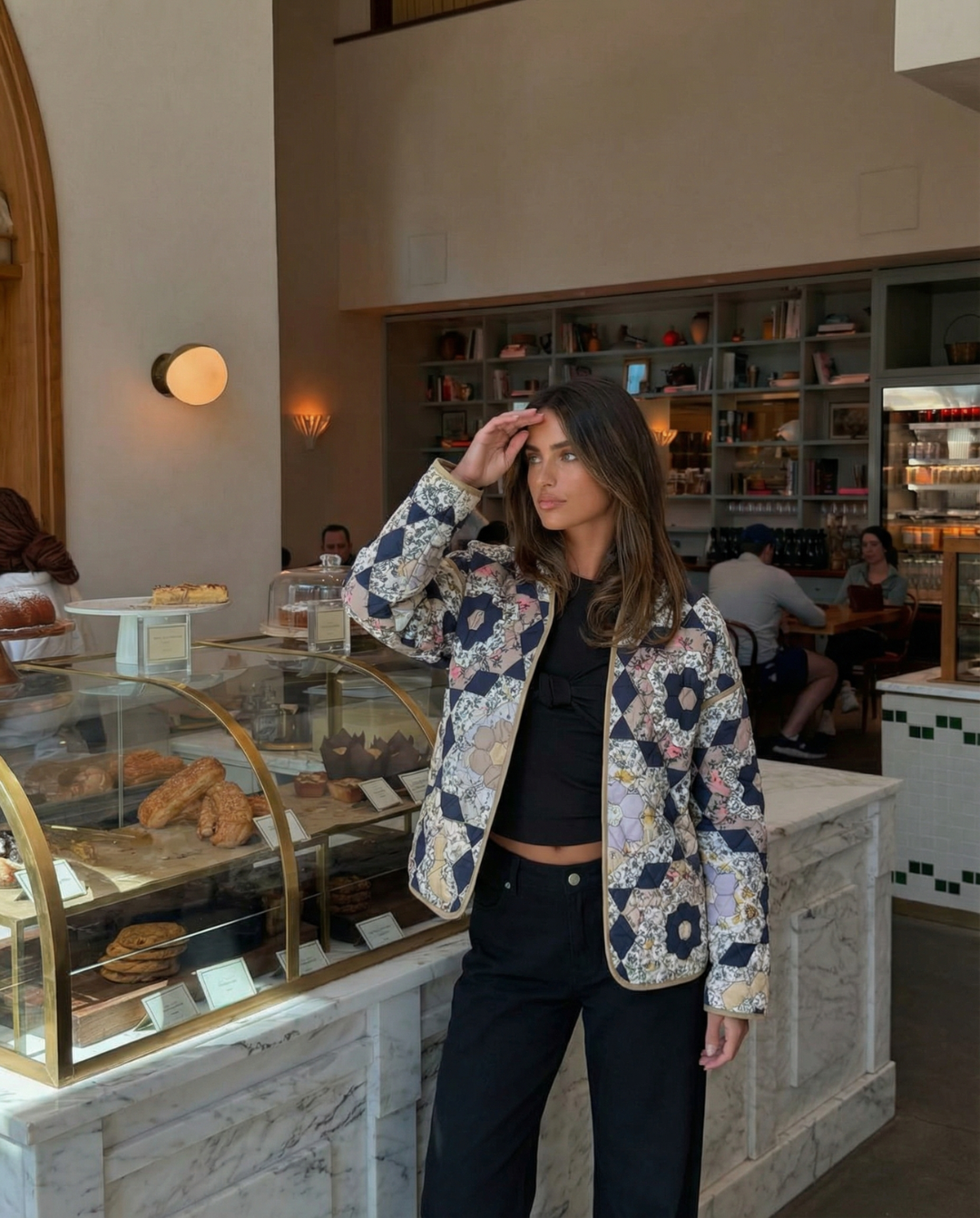 Ayla | Quilted Jacket Patchwork Navy Floral Long Lightweight
