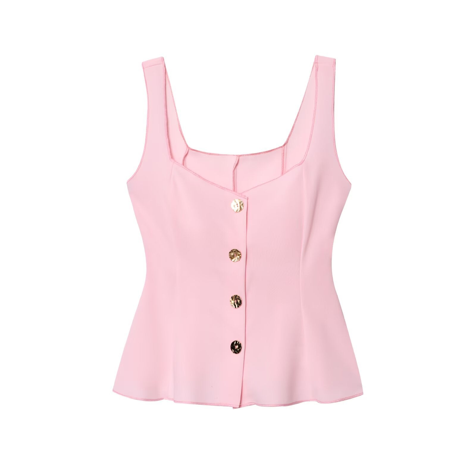 Introducing the MeandMio Aurora | Elegant Square Neck Peplum Top Sleeveless Button Front.