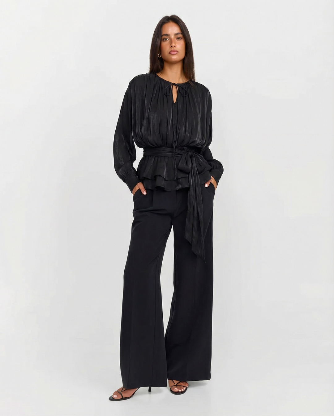- Soft tie neckline - Elegant, feminine, and adjustable