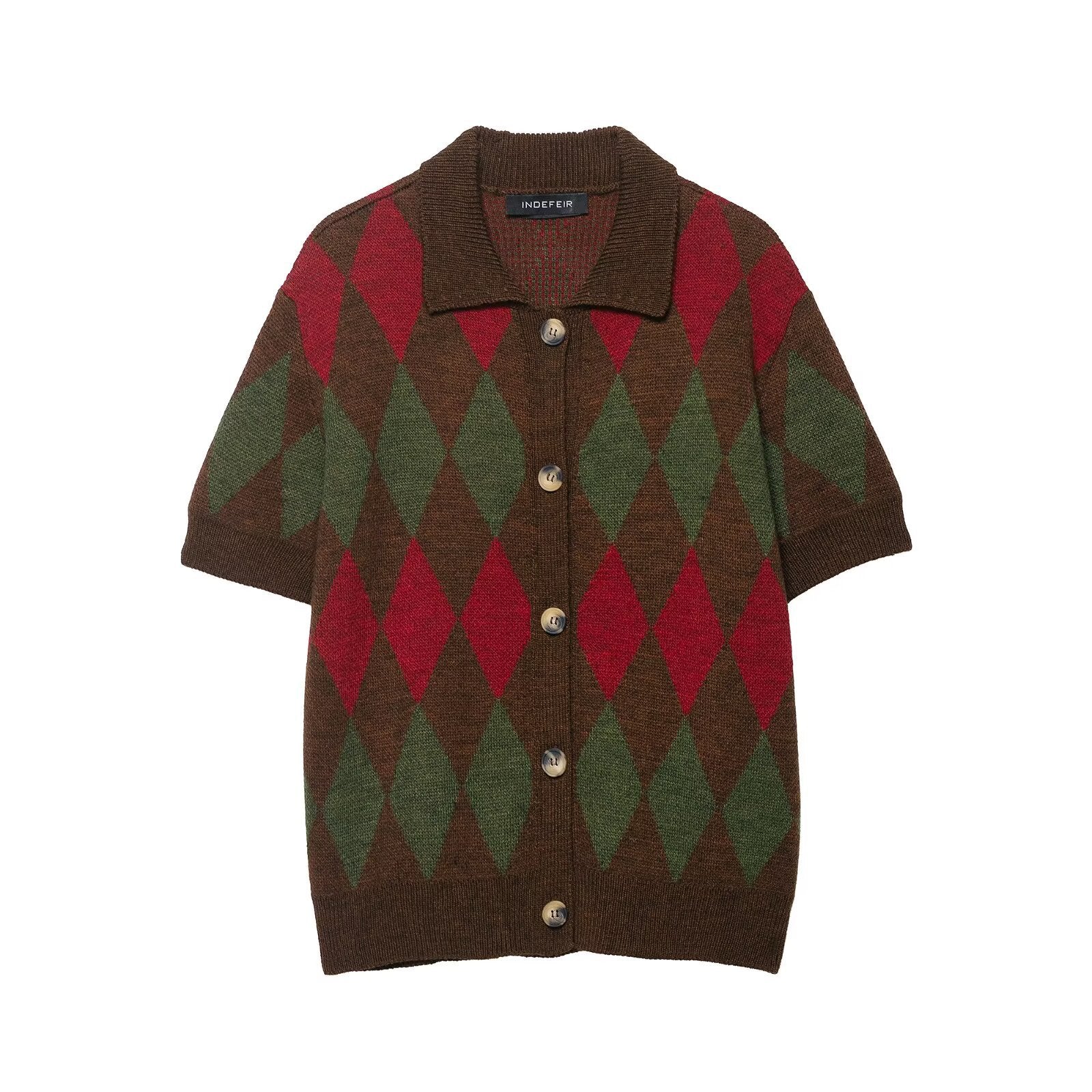 Eleanor | Brown Heritage Argyle Knit Cardigan