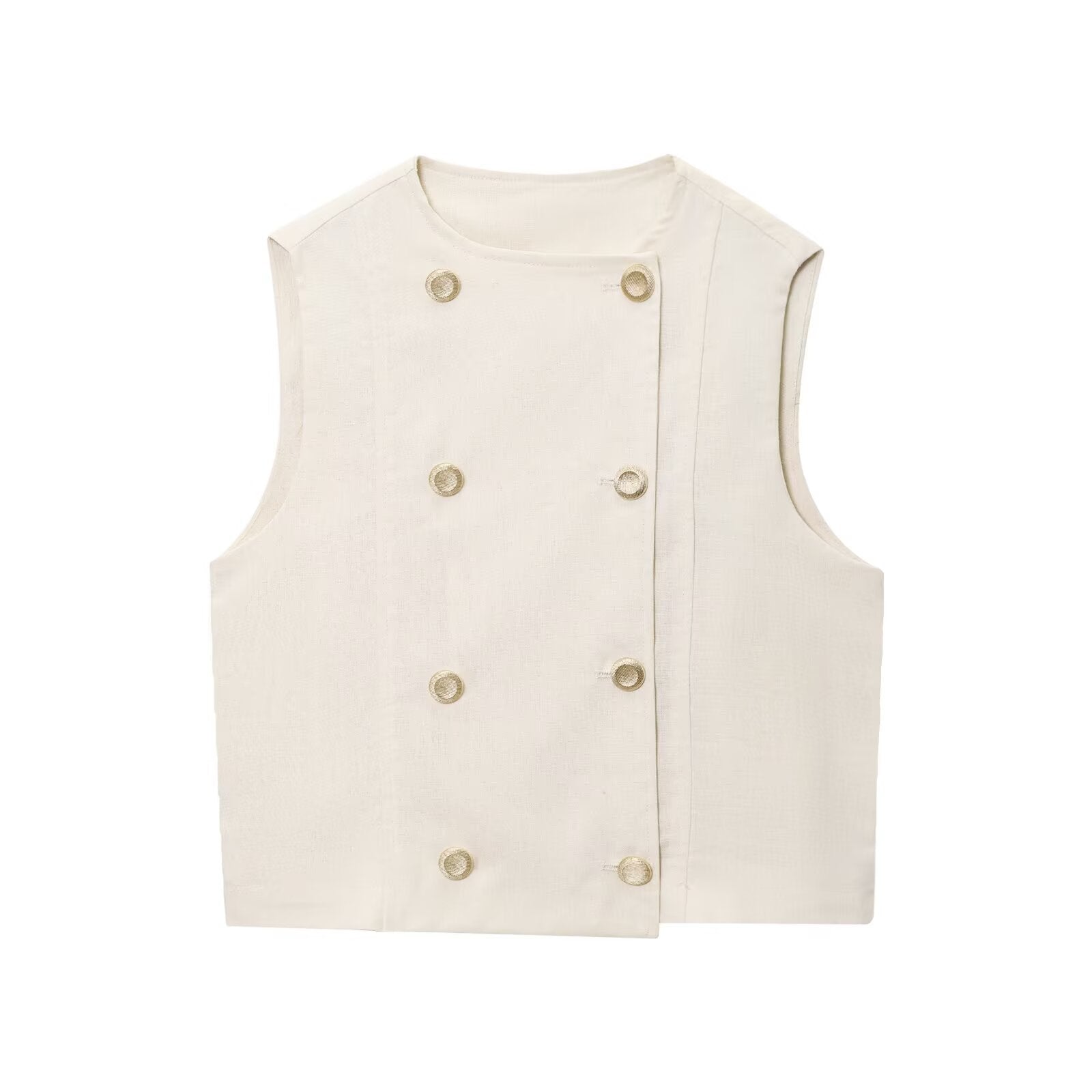 Meet the MeandMio Luxe Gold-Button Vest Set - Cream.
