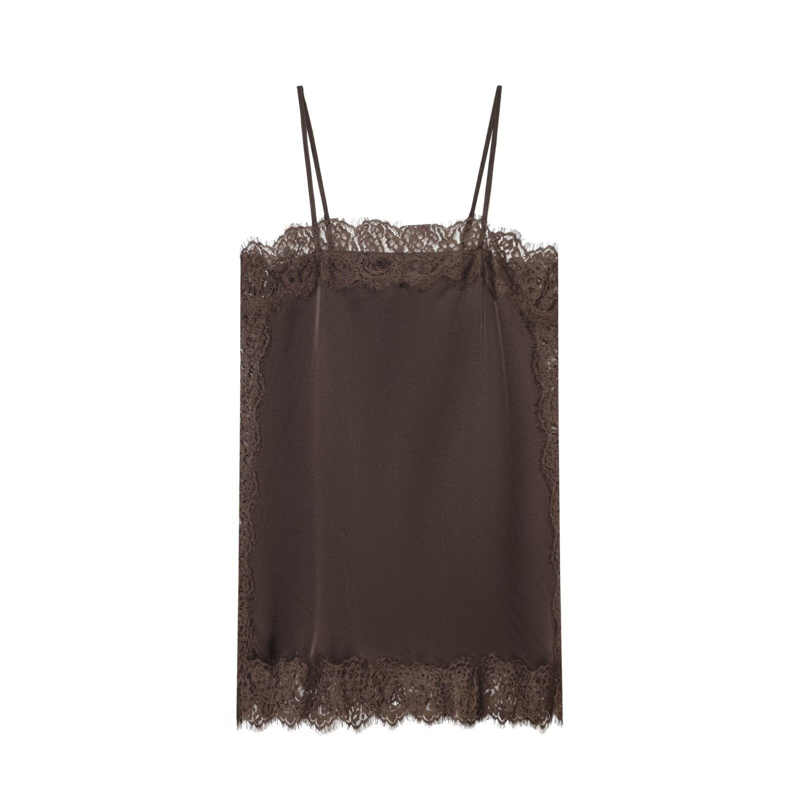 Introducing the MeandMio Lena | Elegant Lace Cami Top Brown Satin Sleeveless Vest.