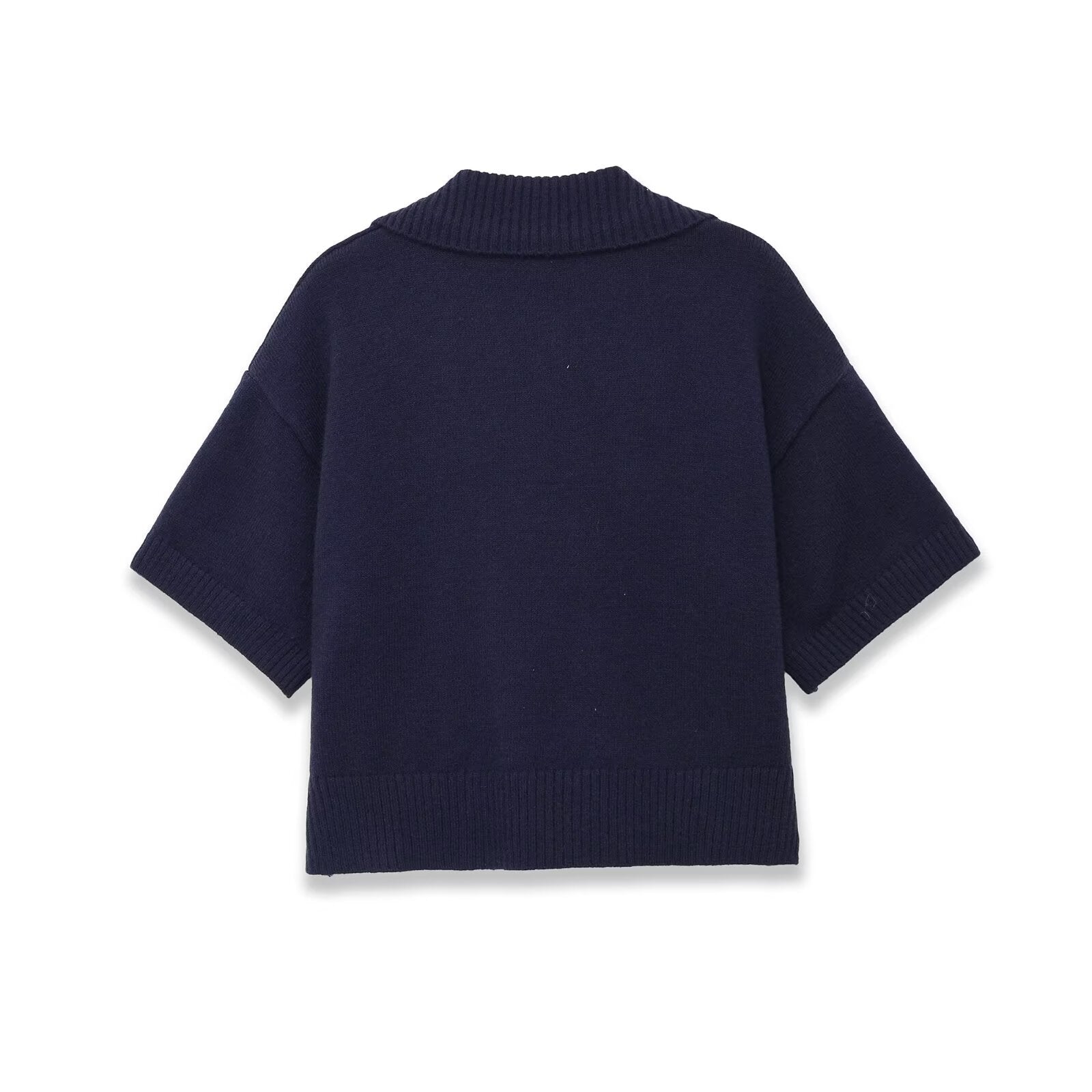 Meet the MeandMio Vintage Color-Block Pocketed Sweater - Navy.