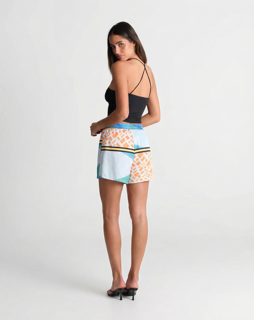 The geometric print adds a playful edge.