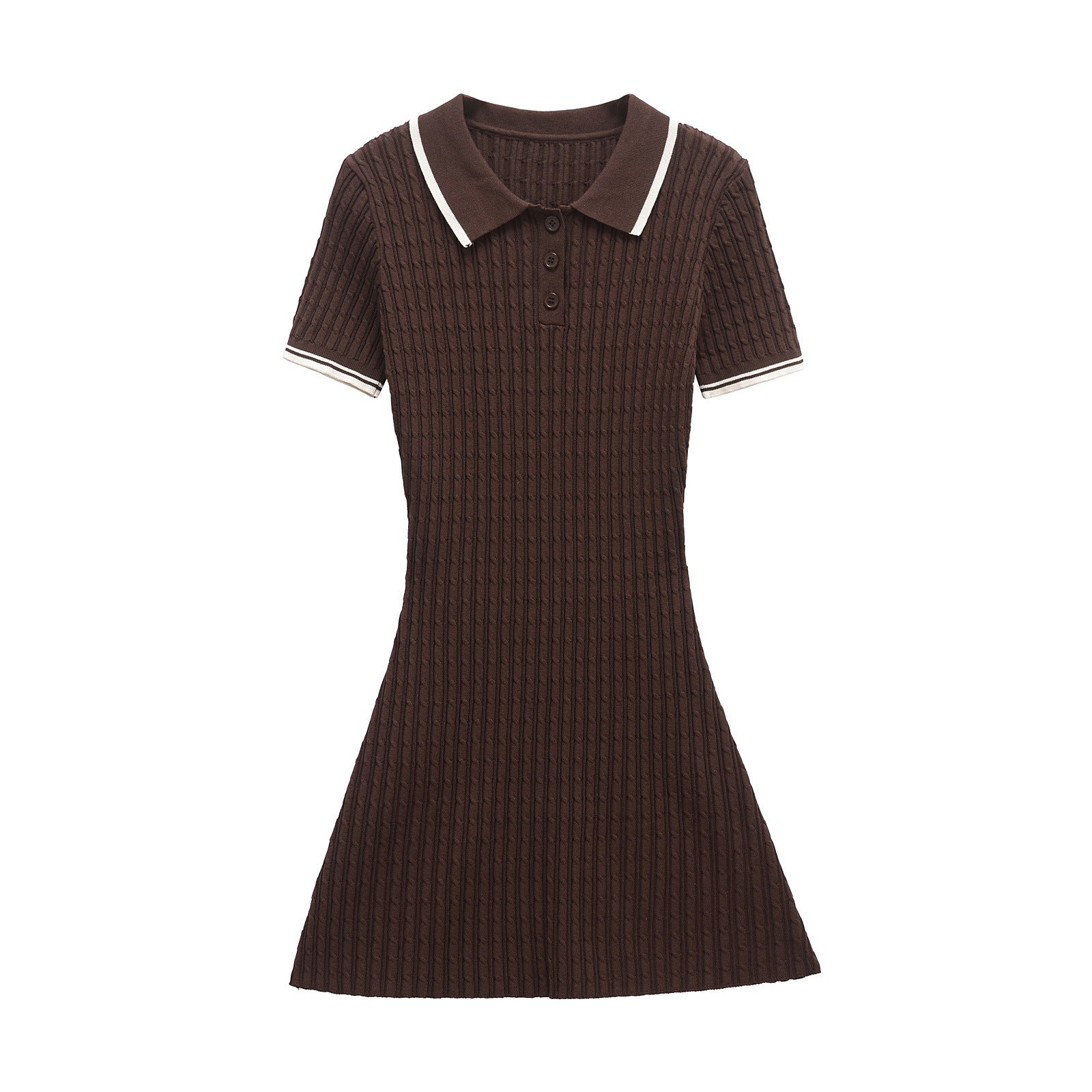 Meet the MeandMio Luxe Cable-Rib Polo Dress - Brown.