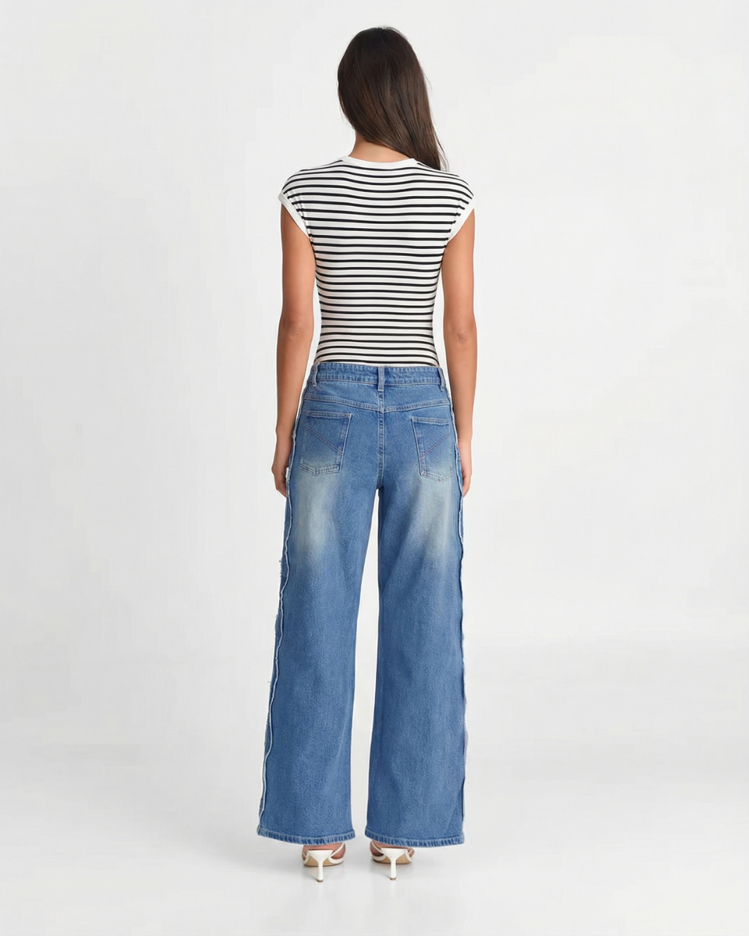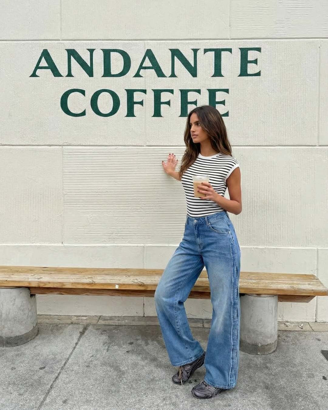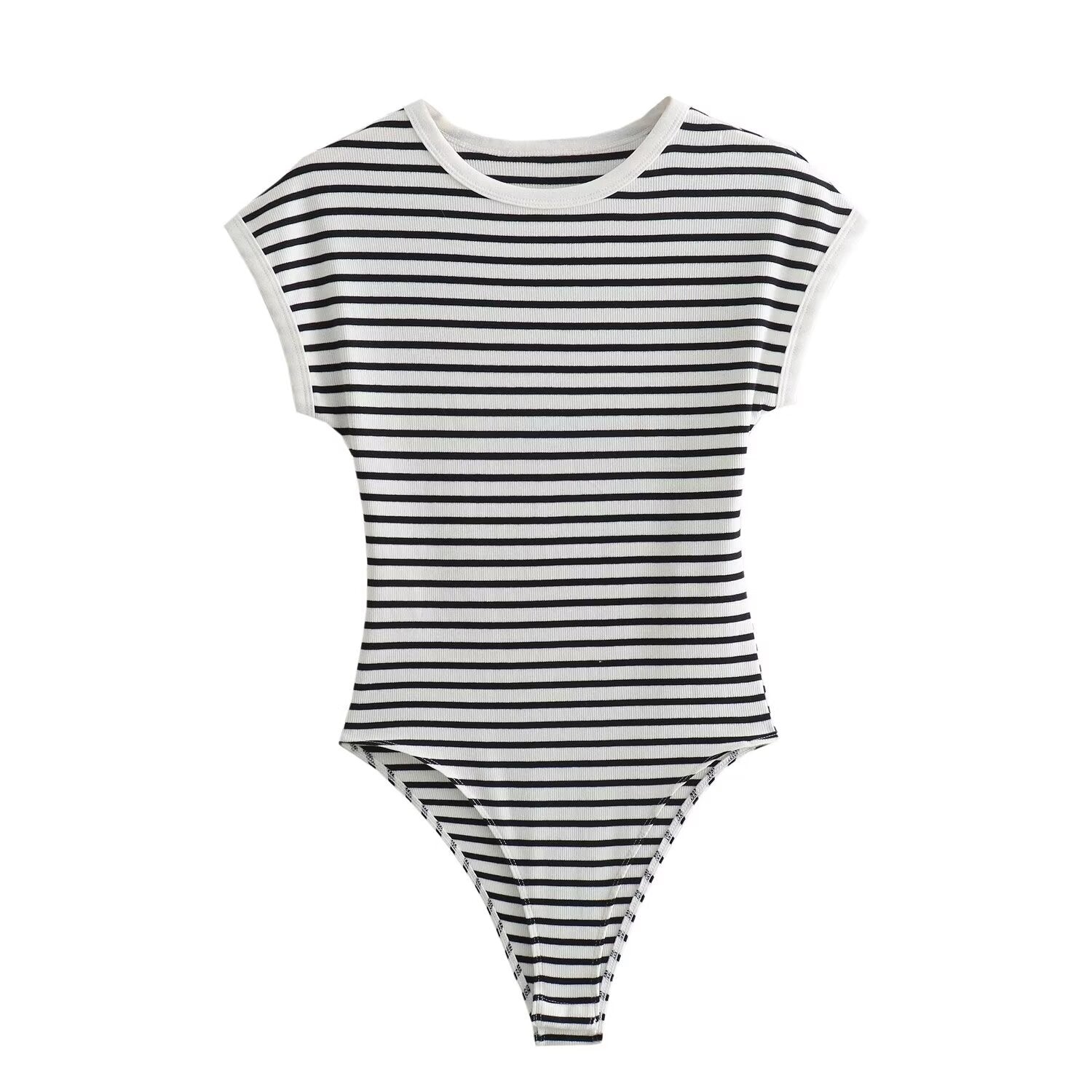 Meet the MeandMio Essential Cap-Sleeve Stripe Bodysuit - White.