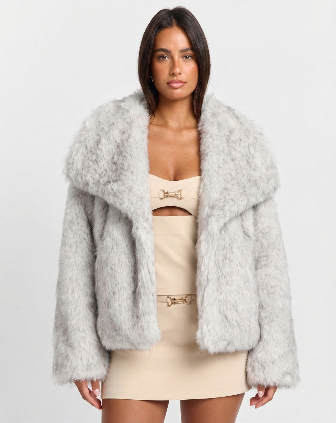 Until now. Meet the Meandmio Urban Shawl-Collar Faux-Fur Coat – Gray. A soft, statement layer that brings comfort and confidence together in one effortless piece.