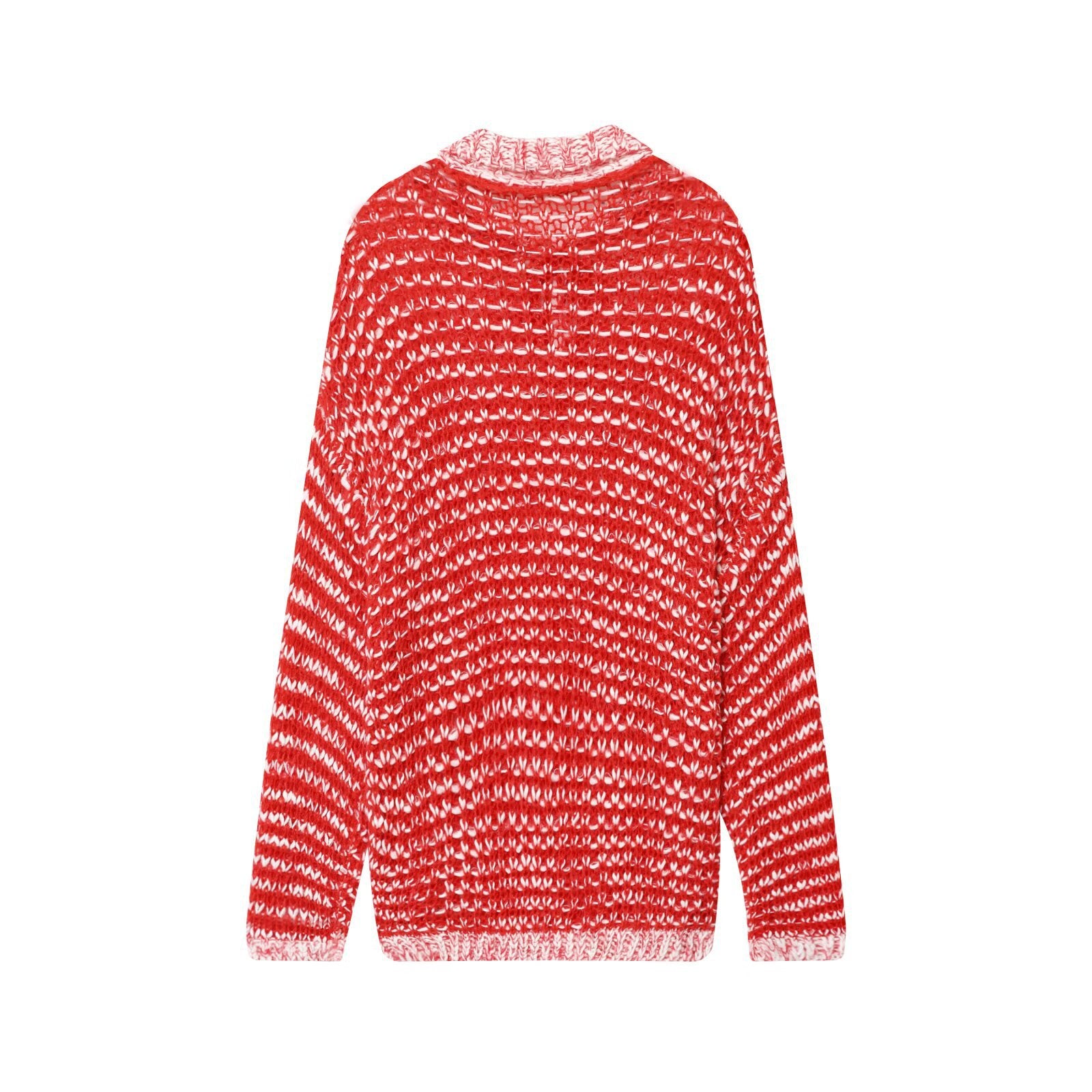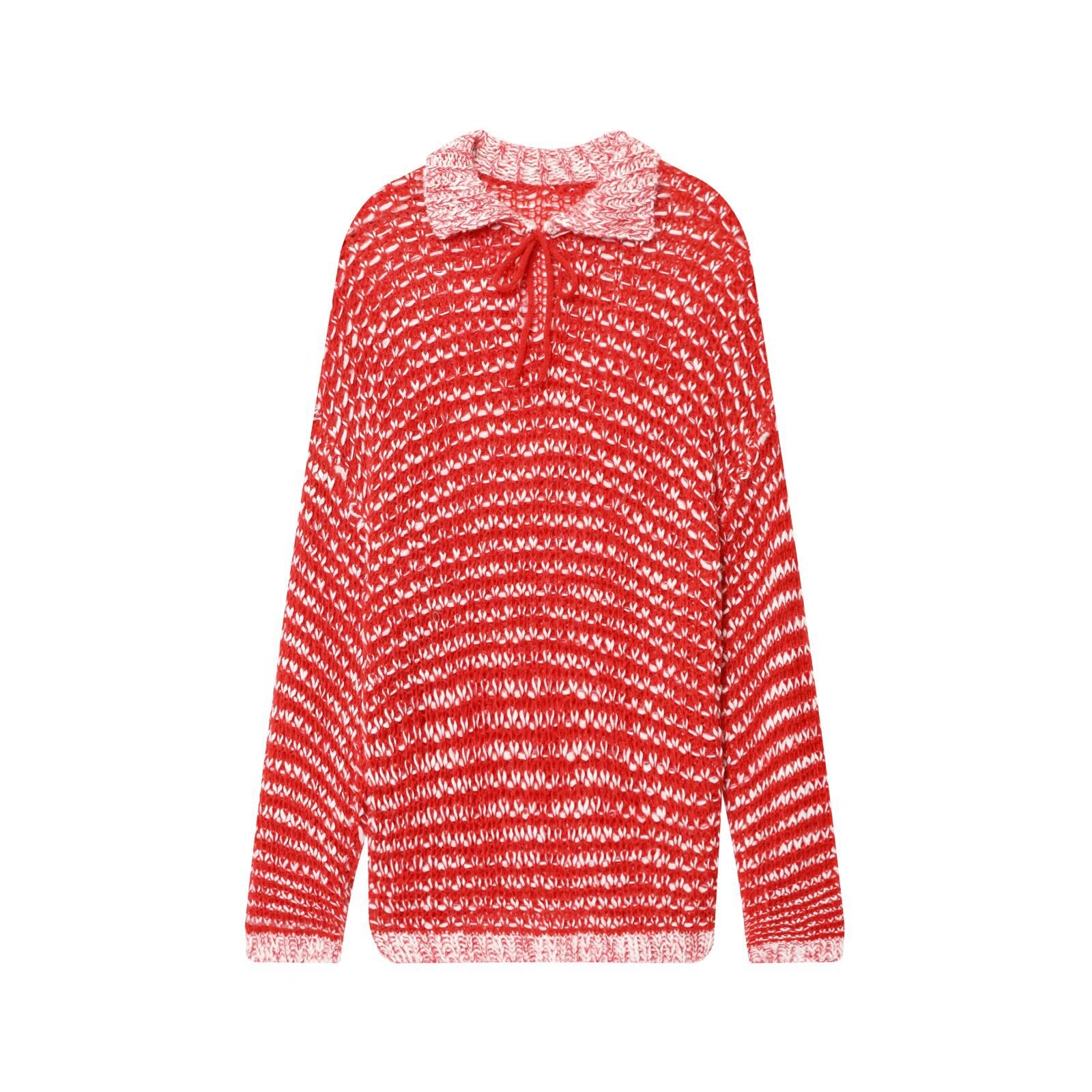 Meet the MeandMio Lily | Red Relaxed Open Knit Striped Hooded Polo Jumper.