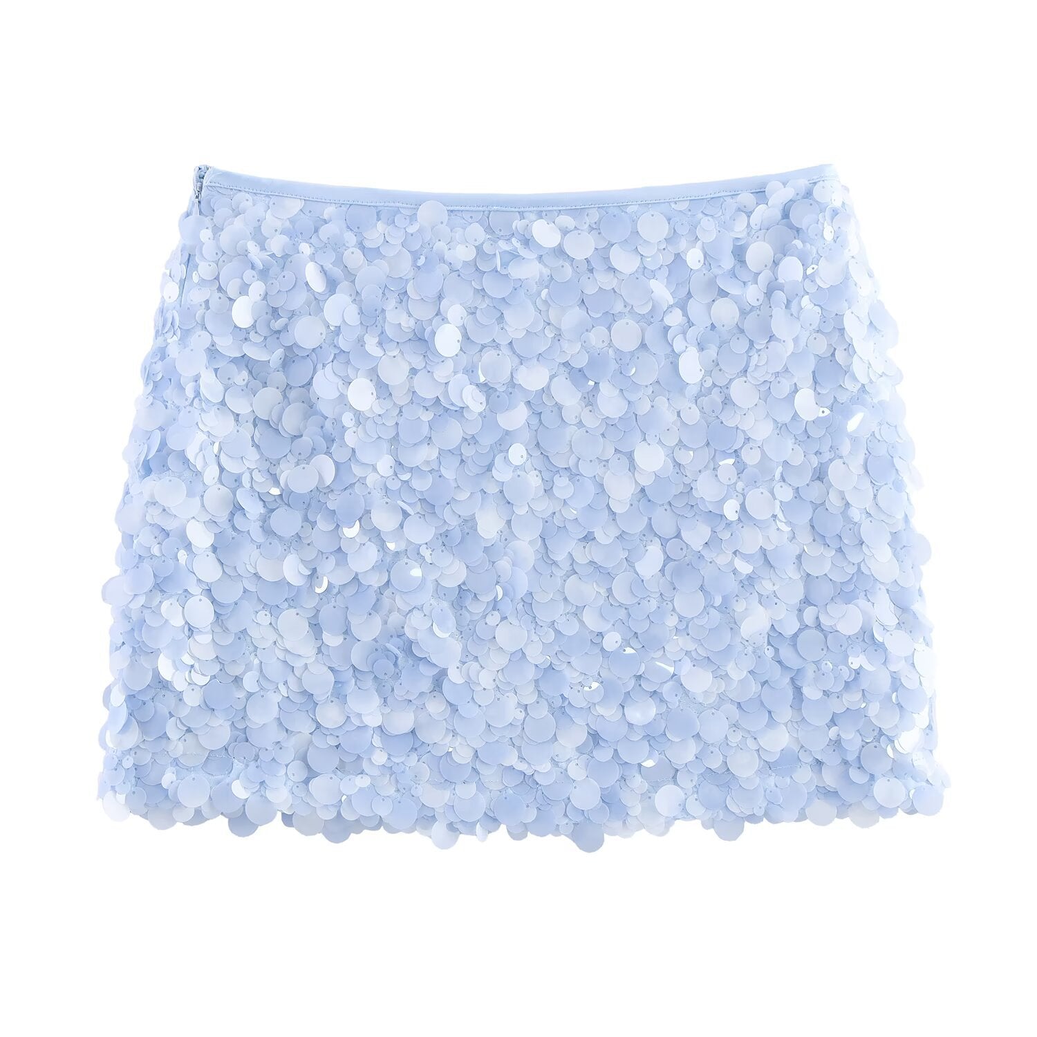 Meet the MeandMio Edge Sequin Mini Skirt - Light Blue.