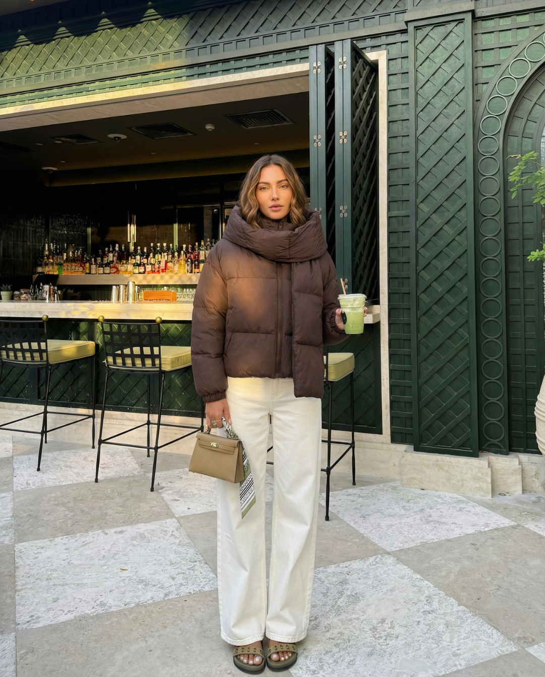 Until now. Meet the MeandMio Luxe Scarf Puffer Jacket – Brown.