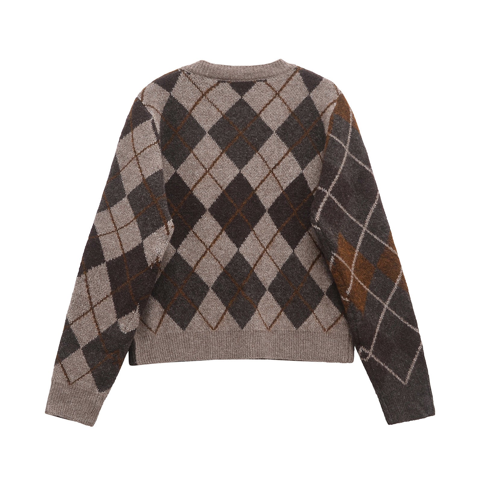 Meet the MeandMio Vintage Argyle-Knit Cardigan Sweater - Brown.