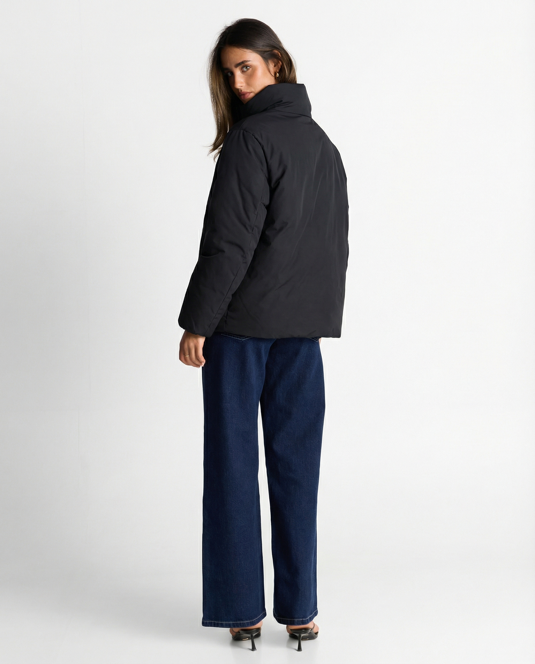 - High-Neck Collar Design – Keeps you warm while adding a refined, modern edge
