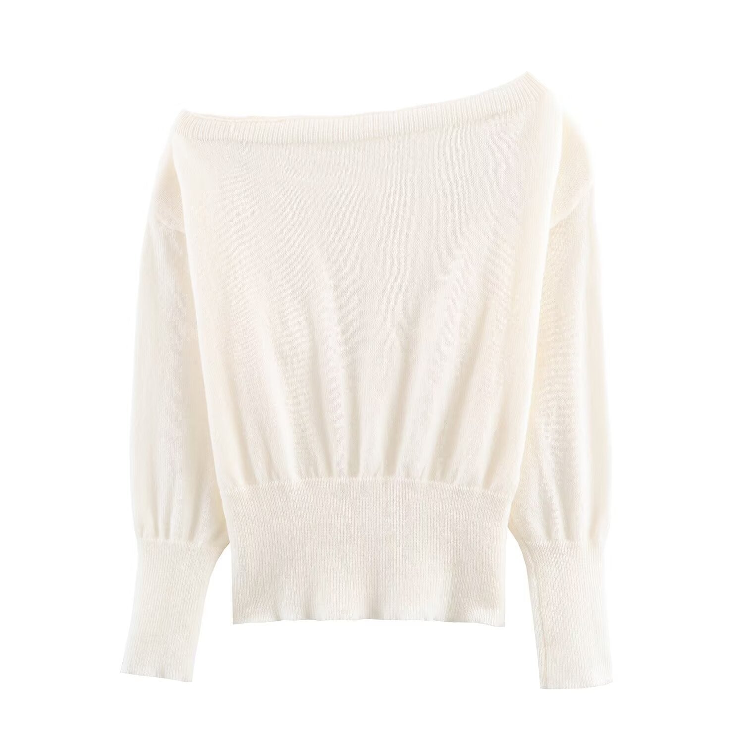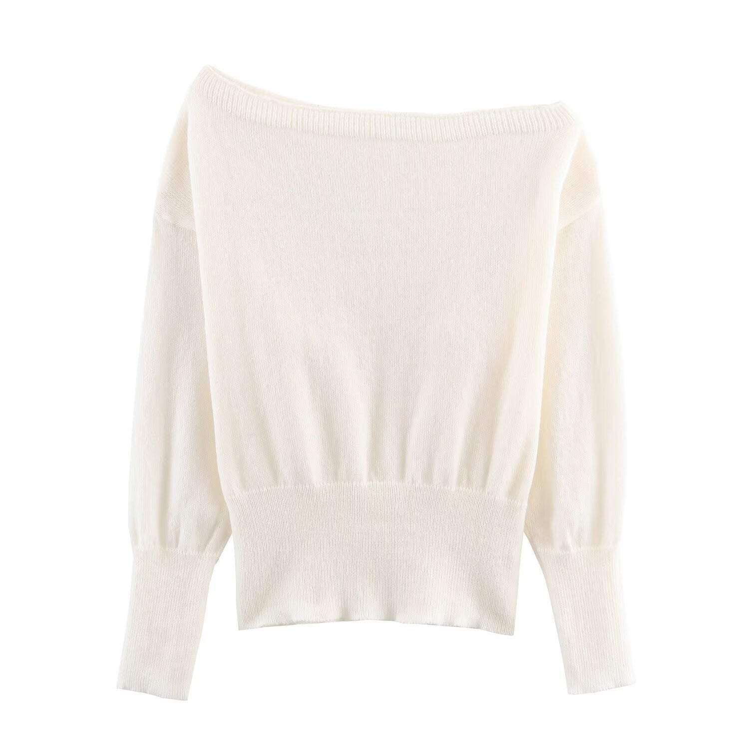 Maren | Elegant Off Shoulder Sweater Cream Knitted Long Sleeve