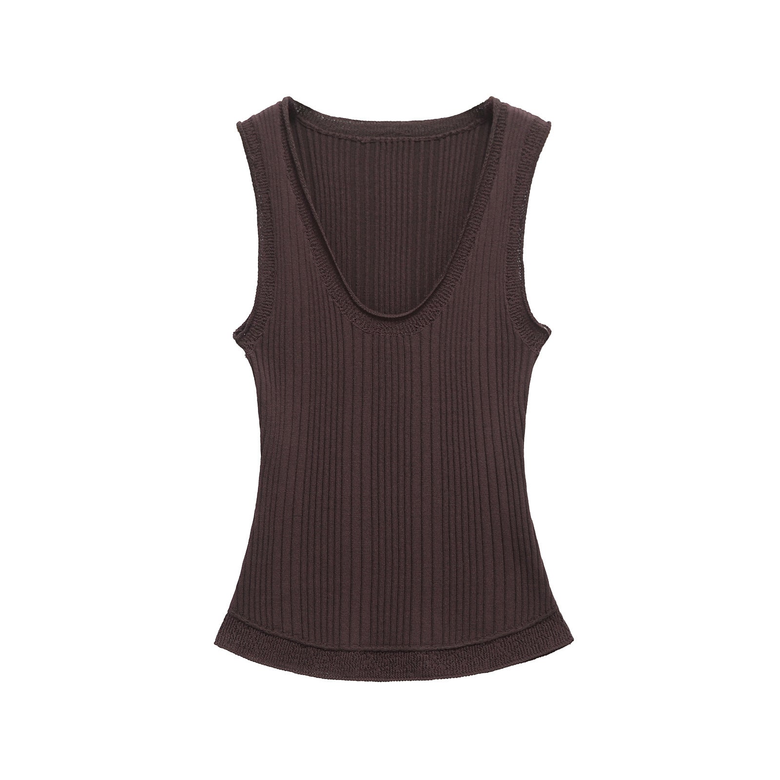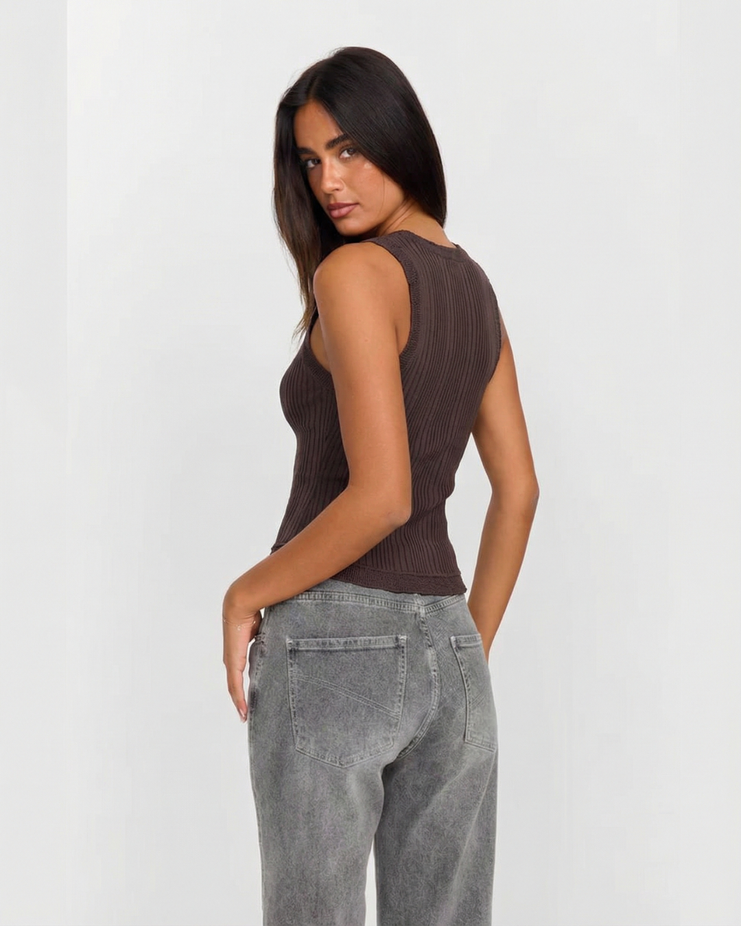 Introducing the MeandMio Noa | Everyday Knitted Tank Top Brown Ribbed Scoop Neck Sleeveless.