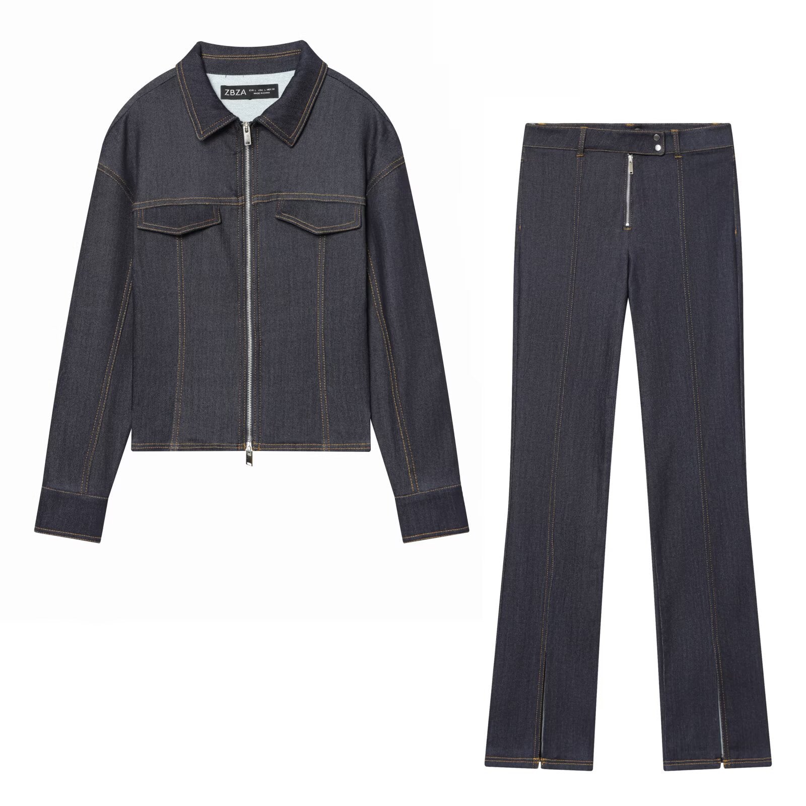 Meet the MeandMio Edge Denim Zip Set - Dark Blue.