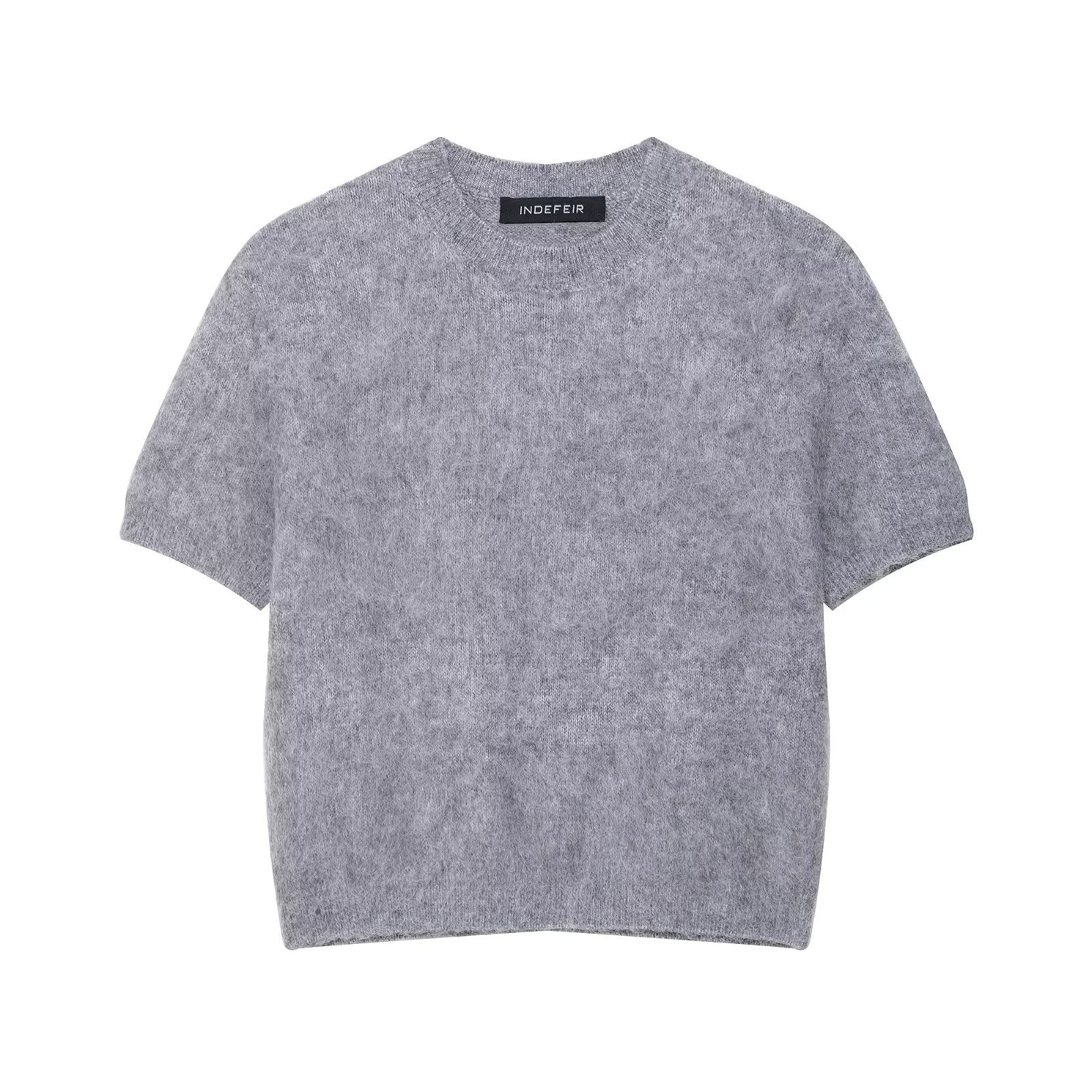 Mia | Fluffy Knitted Top Grey Short Sleeve Crew Neck