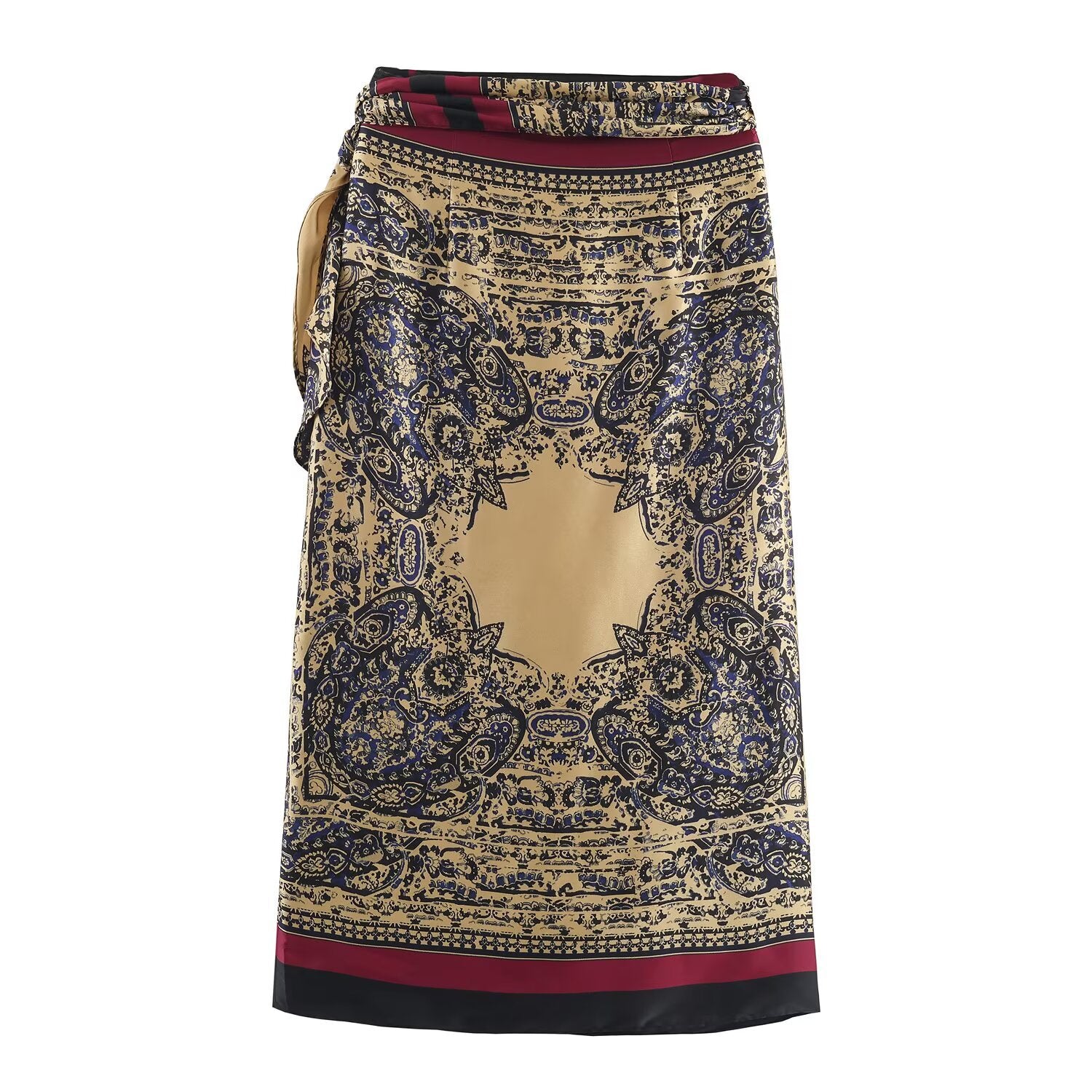 Meet the MeandMio Luxe Printed Wrap Midi Skirt - Beige.