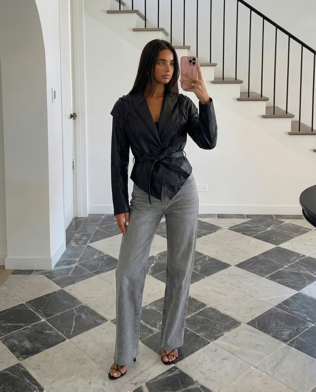 Until now. Meet the MeandMio Edge Belted Leather Jacket – Black.
