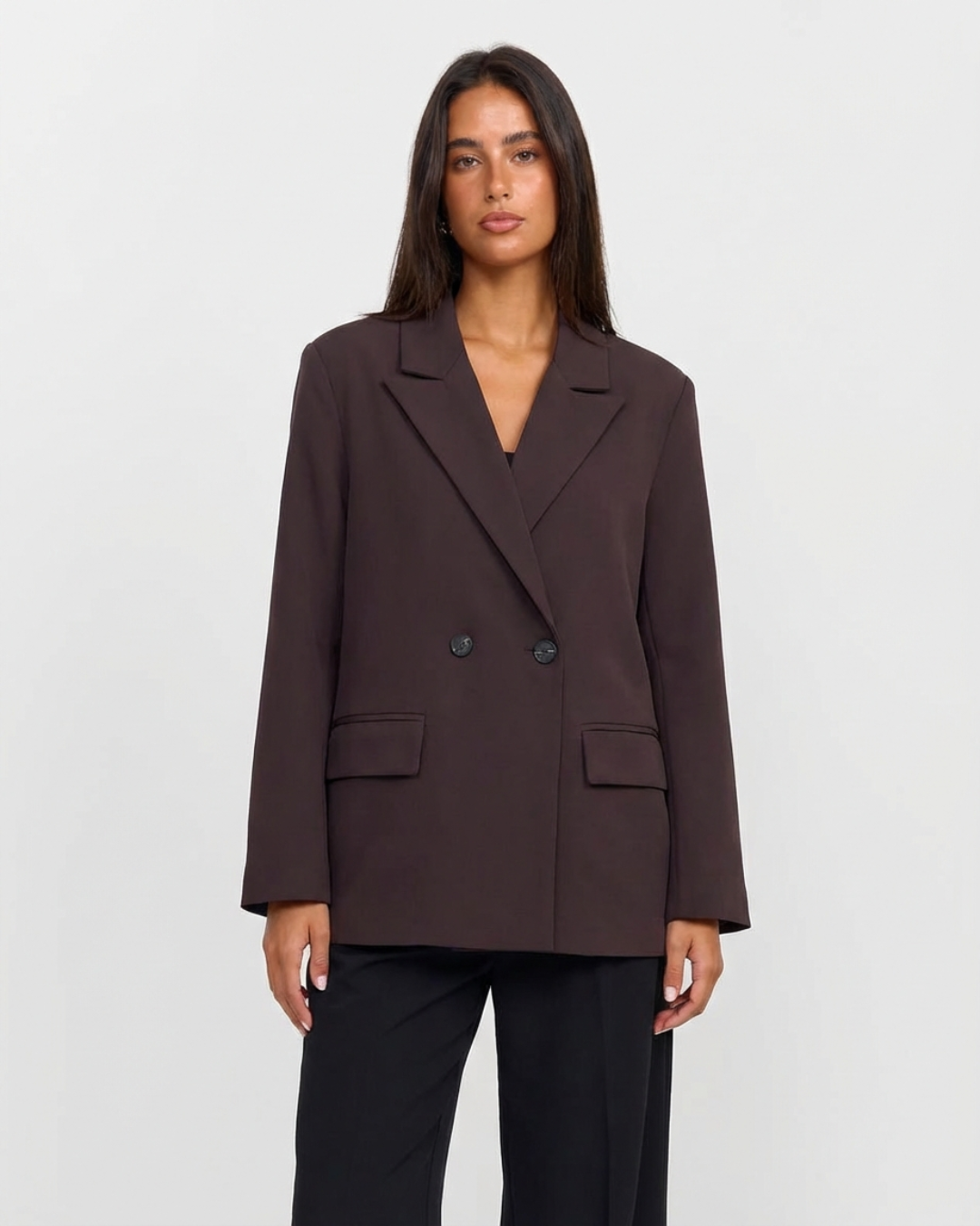 Meet the MeandMio Essential Double-Breasted Blazer.