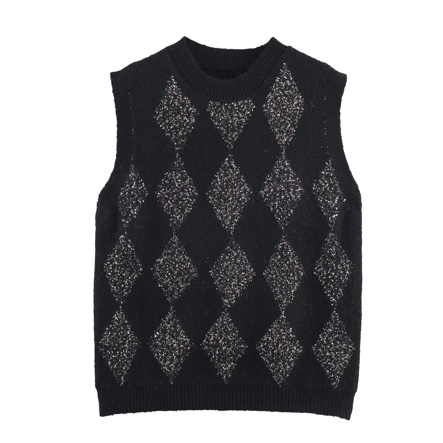 The Edge Rhinestone Argyle Vest reinvents a timeless knit with confident sparkle.