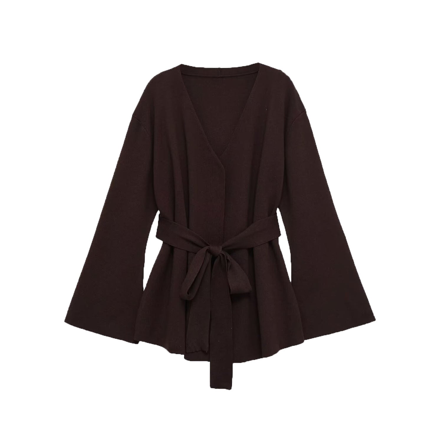 Meet the MeandMio Luxe Wrap-Belted Sweater - Brown.