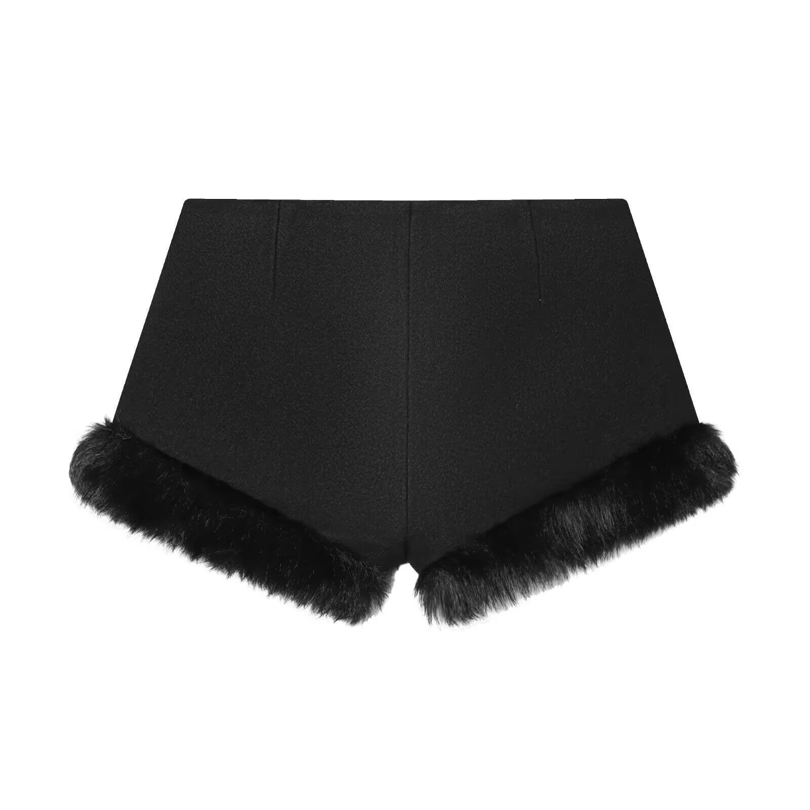 Meet the MeandMio Edge Fur-Trim Shorts - Black.