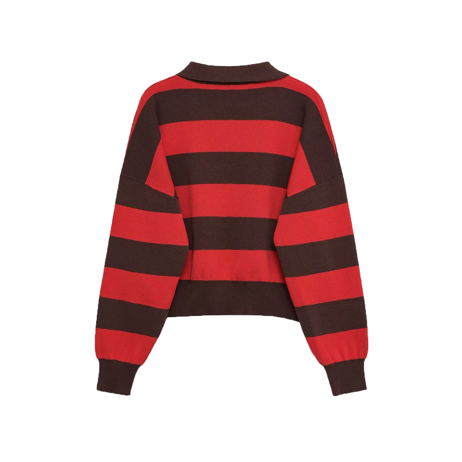 Phoebe | Red Cosy Striped Knit Polo Jumper