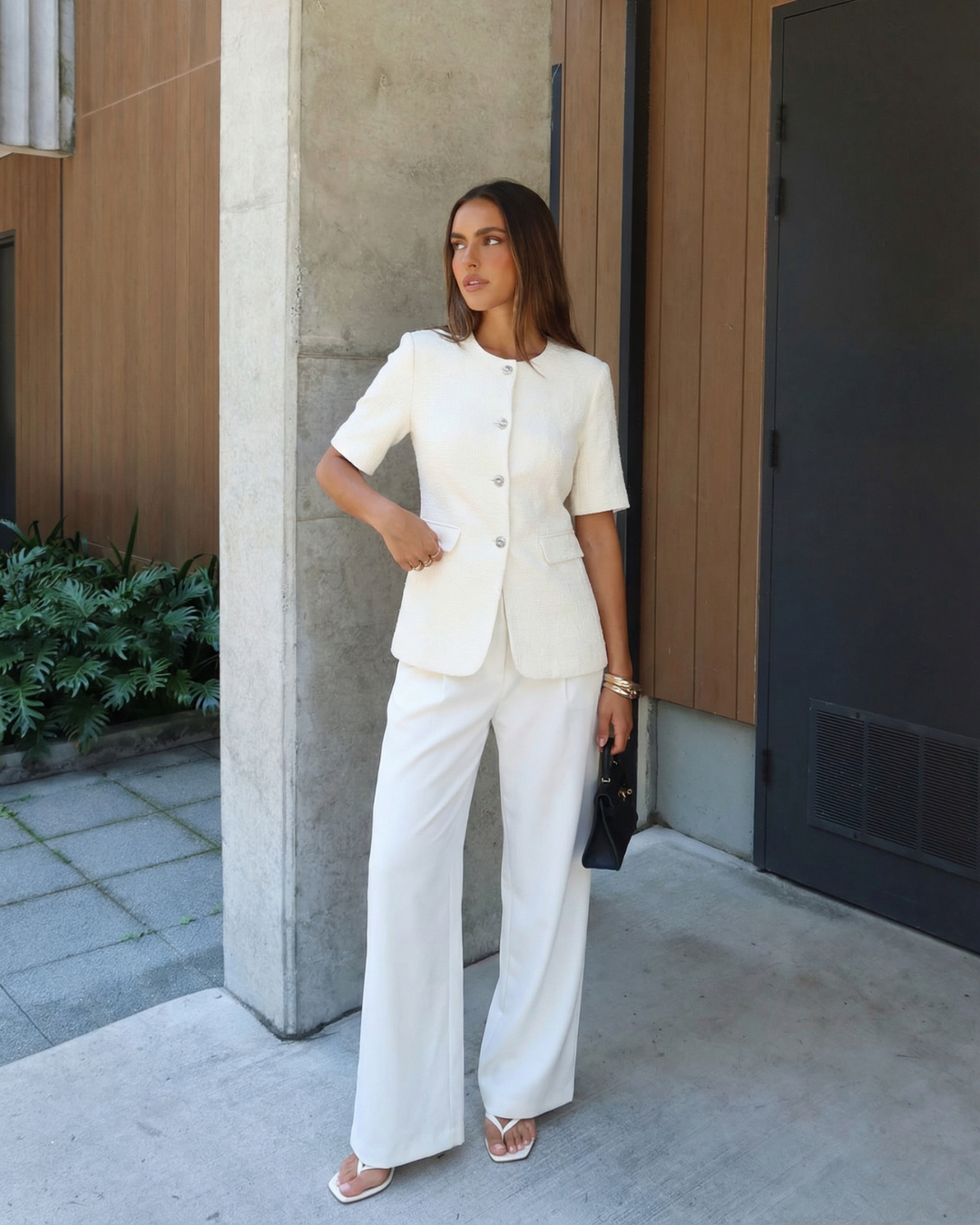 Meet the MeandMio Essential Buttoned Short Sleeve Blazer - White.