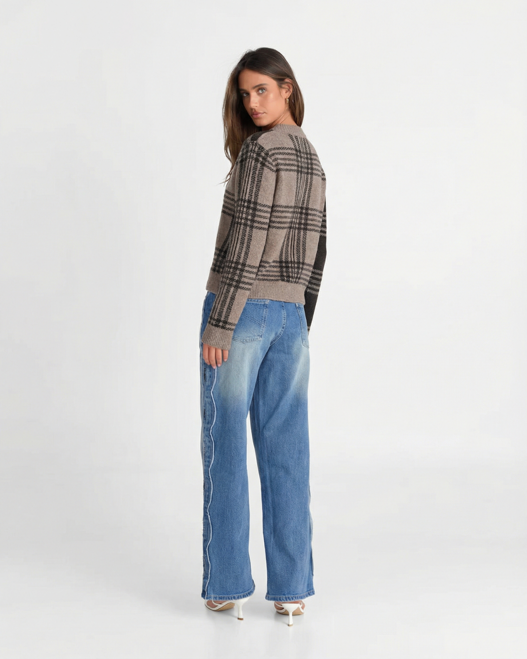 Meet the MeandMio Vintage Plaid Panel Cardigan - Gray.