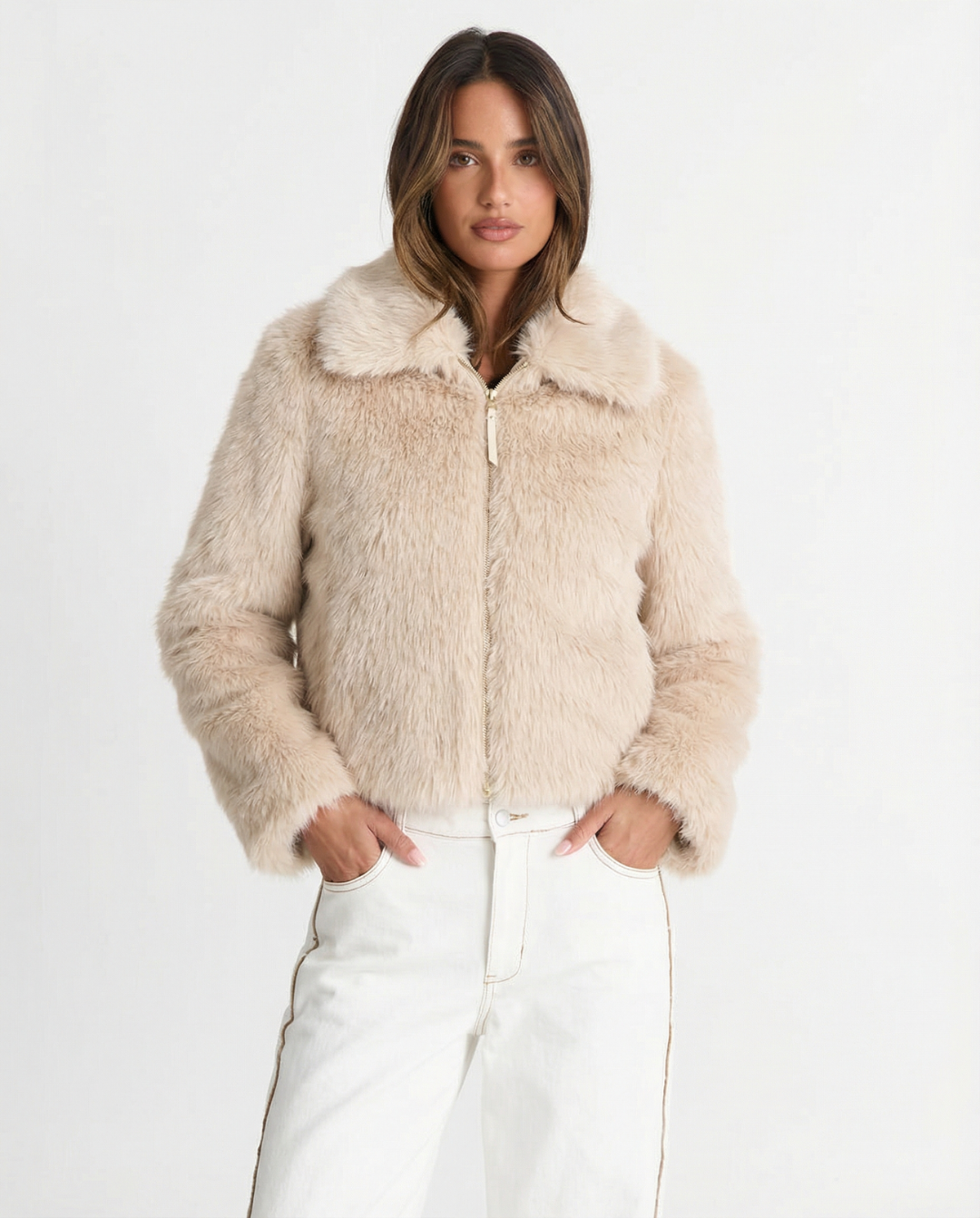 Until now. Meet the Studio Funnel-Collar Faux-Fur Jacket - White. A premium quality layer that blends modern style with all-day comfort.