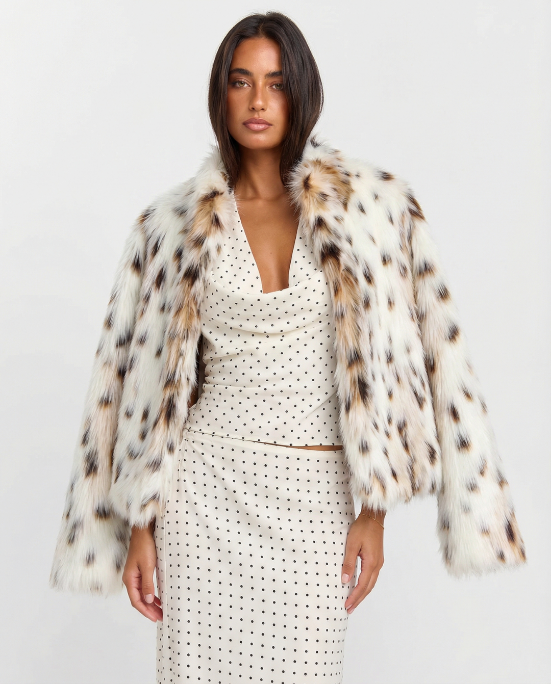 Until now. Meet the Vintage Snow-Spot Faux-Fur Coat - White, designed to bring premium quality warmth with a statement look that feels confident, not overdone.