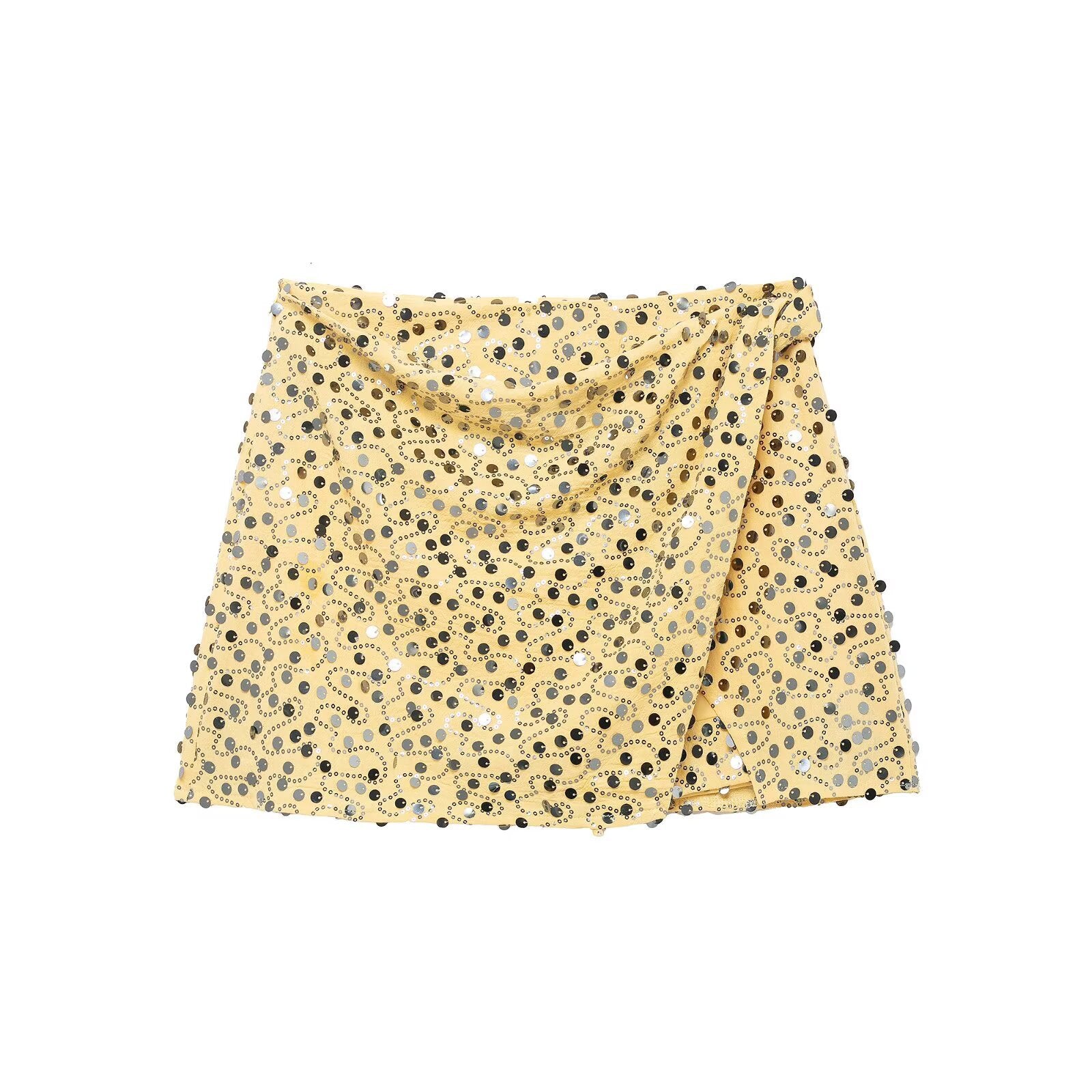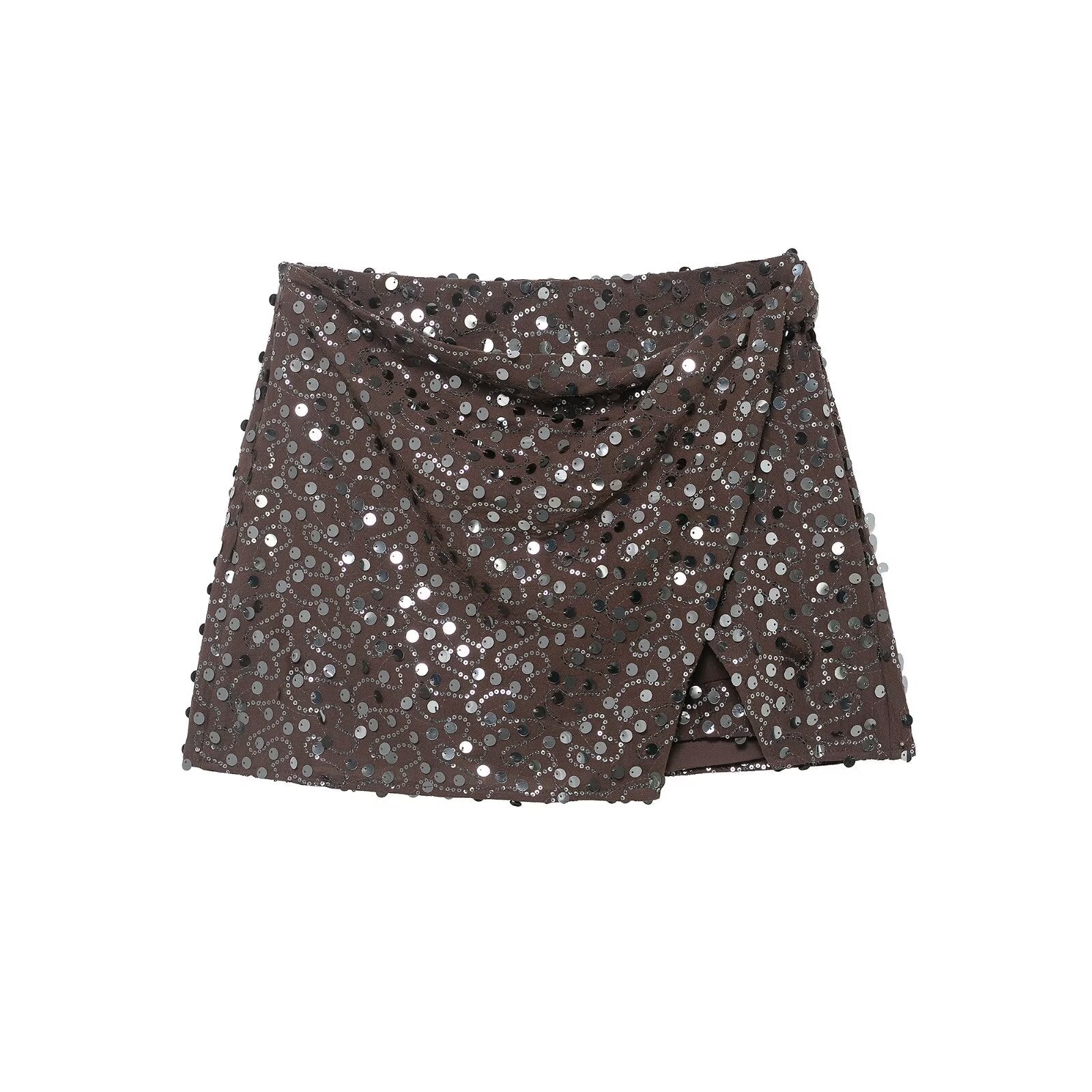 Meet the MeandMio Edge Sequin Wrap Mini Skirt.