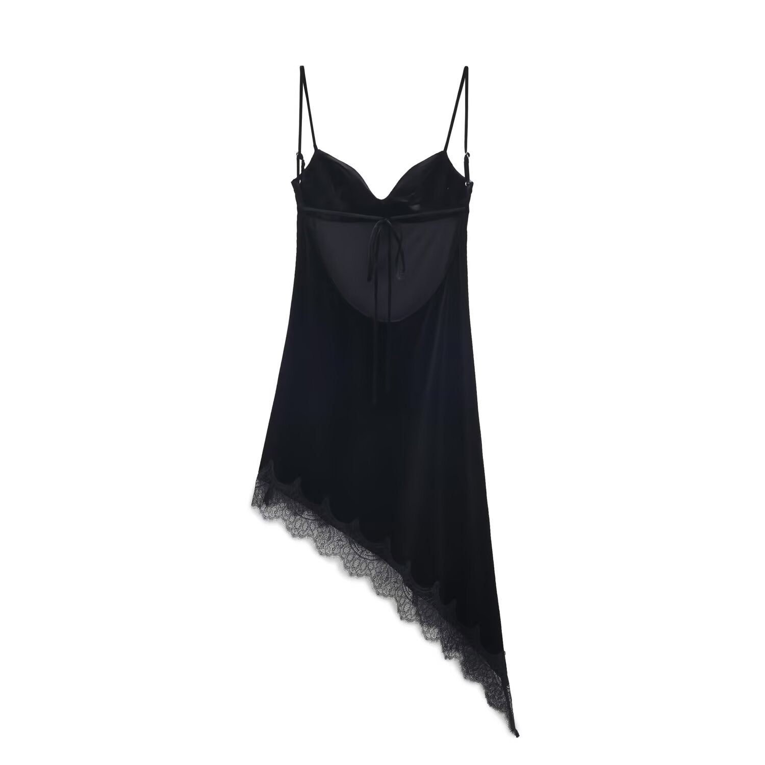 Meet the MeandMio Luxe Asymmetric Lace Dress - Black.