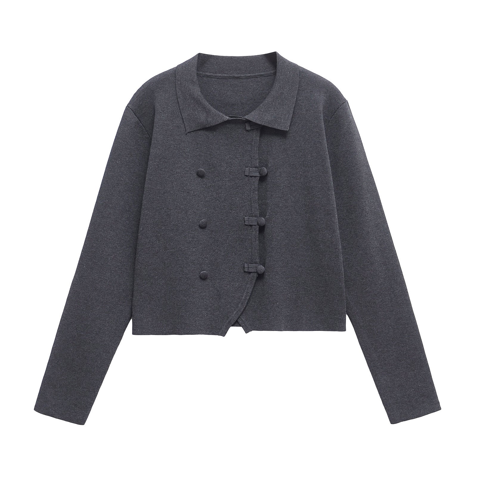 Meet the MeandMio Vintage Mandarin Toggle Cardigan - Gray.