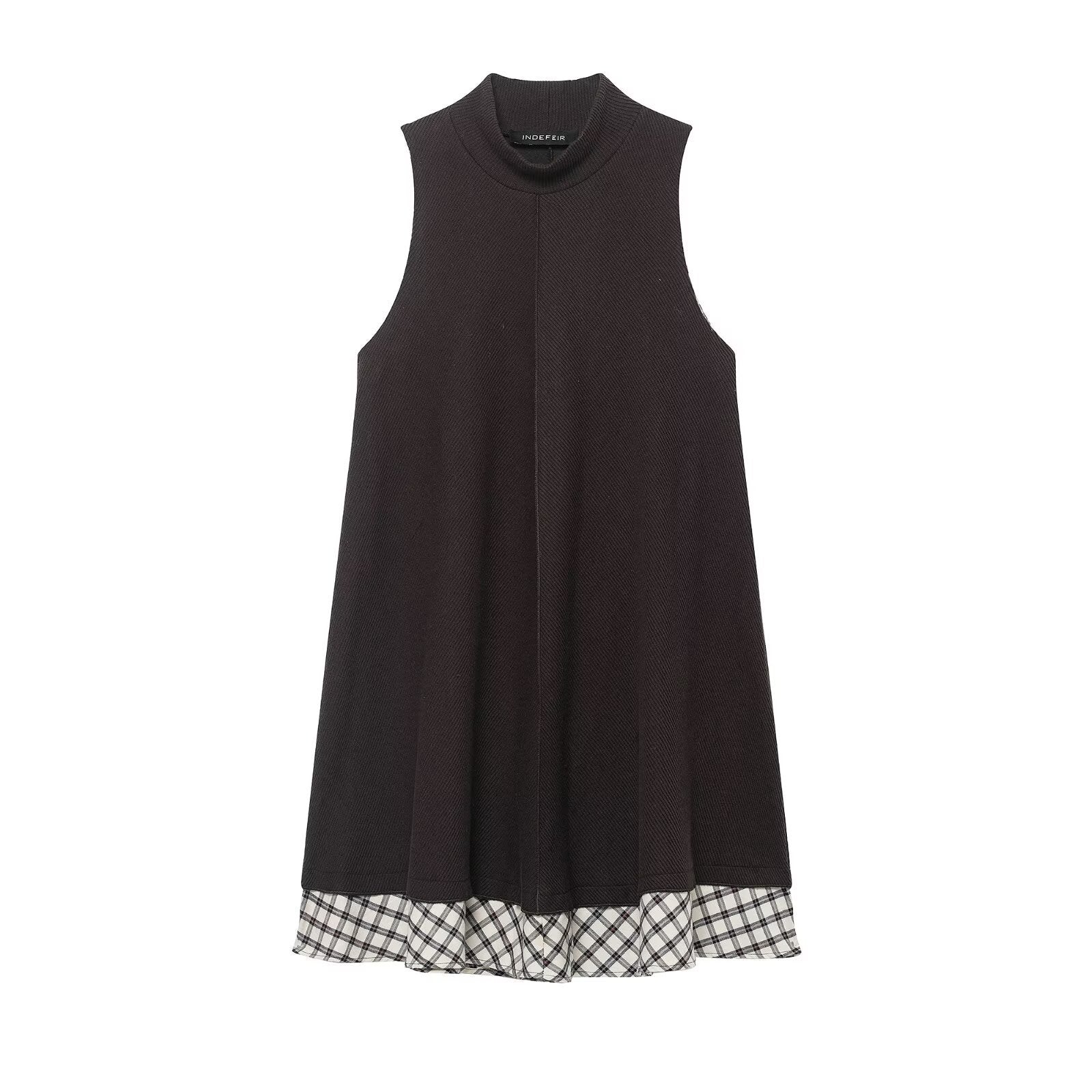 Meet the MeandMio Vintage Check Hem Dress - Brown.